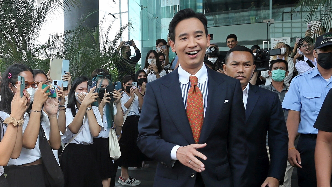 นายพิธา ลิ้มเจริญรัตน์ หัวหน้าและแคนดิเดตนายกฯ พรรคก้าวไกล เดินผ่านกลุ่มแฟนคลับด้อมส้มที่ตามมาให้กำลังใจ จำนวนมาก ระหว่างมาออกรายการ “เปิดปากกับ ภาคภูมิ” ทางไทยรัฐทีวี ช่อง 32 นายพิธายืนยัน ว่าไม่กังวลใจที่ กกต.ส่ง เรื่องให้ศาลรัฐธรรมนูญ วินิจฉัยปมหุ้นไอทีวี ประกาศพร้อมสู้ทั้งคดี และการโหวตเลือกนายกฯ.