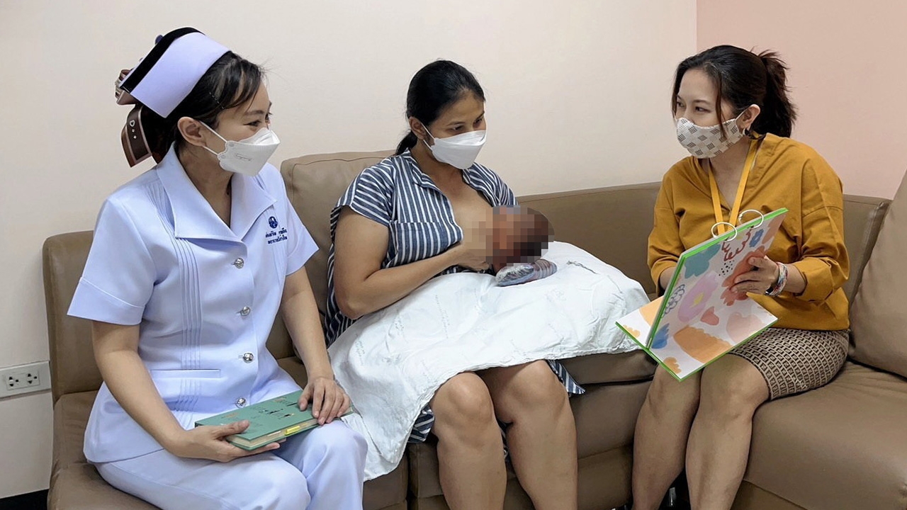 เพื่อสนับสนุนการเลี้ยงลูกด้วยนมแม่ให้มีการปฏิบัติอย่างยั่งยืนในสังคมไทย มูลนิธิศูนย์นมแม่แห่งประเทศไทย จึงได้ดำเนิน โครงการสร้างสุขภาวะเด็กไทยด้วยนมแม่ ฝ่าวิกฤติโควิด-19 และสานพลังเครือข่ายสู่การขยายผล โดยได้รับการสนับสนุนจากสำนักงานกองทุนสนับสนุนการสร้างเสริมสุขภาพ (สสส.) เพื่อชวนทุกภาคส่วนในสังคมไทยให้มาร่วมกันสร้างต้นทุนสุขภาพและศักยภาพของเด็กไทยในศตวรรษที่ 21 โดยมีจุดเริ่มต้นที่นมแม่ สนับสนุนให้แม่สามารถเริ่มต้นเลี้ยงลูกด้วยนมแม่ ด้วยการนำลูกมาวางบนอกแม่ทันที และช่วยให้ลูกได้เริ่มดูดนมแม่ภายในระยะเวลา 1 ชั่วโมงแรกหลังคลอด เป็นหนึ่งในแนวทางปฏิบัติที่สำคัญของบันได 10 ขั้นสู่ความสำเร็จของการเลี้ยงลูกด้วยนมแม่ที่ทางองค์การอนามัยโลก (WHO) และองค์การยูนิเซฟ (Unicef) ให้การสนับสนุนและปกป้องให้เด็กทุกคนได้กินนมแม่อย่างเดียว 6 เดือน พญ.สาวิตรี สุวิกรม หัวหน้ากลุ่มงานสูติ-นรีเวชกรรม รพ.เจริญกรุงประชารักษ์ ซึ่งเป็นโรงพยาบาลสายสัมพันธ์แม่-ลูกที่สนับสนุนการเลี้ยงลูกด้วยนมแม่มาอย่างยาวนาน กล่าวถึงความสำคัญของเวลา 1 ชั่วโมงแรกหลังคลอดว่า เป็นจุดเริ่มต้นที่สำคัญที่สุด ช่วงที่ทารกอยู่ในครรภ์เป็นสภาพแวดล้อมที่อบอุ่นและเงียบสงบ แต่สภาพแวดล้อมหลังคลอดทั้งบรรยากาศ แสงสว่าง และเสียงที่จอแจ เป็นสิ่งที่น่าตกใจสำหรับเด็กทารก การที่ทารกได้อยู่ในหน้าอกของแม่ทันทีหลังคลอดจะเหมือนเป็นการปลอบประโลมทารกให้สงบลง เมื่อแม่ได้มีการลูบไล้และพูดคุย เด็กก็จะได้ยินเสียงที่คุ้นเคยตั้งแต่อยู่ในท้อง ขณะเดียวกันยังเป็นการเพิ่มพลังกายและพลังใจทำให้แม่มีพลังมากขึ้นหลังจากผ่านระยะเวลา 9 เดือนที่รอคอย นอกจากนี้การนำลูกมาวางแนบอกยังทำให้ทารกได้รับเชื้อจุลินทรีย์ที่ดีจากผิวหนังของแม่ การนำลูกเข้าเต้าและได้ดูดนมแม่ใน 1 ชั่วโมงแรก ทำให้เกิดการหลั่งของฮอร์โมนโปรแลคติน ที่ช่วยกระตุ้นการสร้างน้ำนมของแม่ ในน้ำนมแม่หยดแรกมีทั้งสารอาหารที่มีคุณค่าและภูมิคุ้มกันแบบสำเร็จรูปที่ส่งผ่านไปสู่ลูก พญ.สาวิตรีกล่าวต่อว่า หัวใจสำคัญของความสำเร็จในการเลี้ยงลูกด้วยนมแม่นั้น พบว่ามีขั้นตอนสำคัญอยู่ 2 ด้านที่จะต้องทำให้เกิดขึ้นในโรงพยาบาล ตามบันได 10 ขั้นสู่ความสำเร็จของการเลี้ยงลูกด้วยนมแม่ โดยเฉพาะในข้อที่ 3 ส่งเสริมและช่วยเหลือให้แม่ได้โอบกอดลูกเนื้อแนบเนื้อโดยเร็วที่สุดหลังคลอด สนับสนุนแม่ทุกคนให้เริ่มต้นเลี้ยงลูกด้วยนมแม่โดยเร็วที่สุด และข้อที่ 4 แม่ควรได้รับการช่วยเหลือที่เหมาะสมเพื่อให้สามารถ