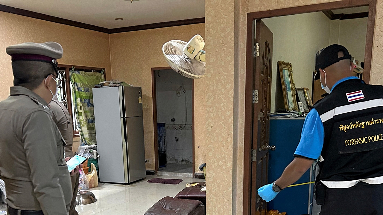หนุ่มใหญ่วัย 56 ระแวงเมียสาววัย 27 แอบมีกิ๊ก หยิบปืนมาข่มขู่แต่เมียสาวฮึดสู้แย่งปืนจนเกิดลั่น กระสุนเจาะร่างเมียล้มฟุบจมกองเลือดดับอนาถ หลังก่อเหตุผัวเกิดความเครียดนั่งดมยารอมอบตัวอ้างไม่ได้ตั้งใจ เผยมีปากเสียงบ่อยครั้งระแวงปันใจให้ชายอื่น แถมไม่ยอมกลับบ้านพัก ก่อนเกิดเหตุเมียหายต้องออกตามหาทั้งคืน แต่กลับมาพบอยู่ในบ้าน เปิดศึกปะทะคารมกระทั่งเกิดเหตุสลดผัวระแวงเมียมีกิ๊กชักปืนขู่ลั่นใส่เมียดับ เปิดเผยเมื่อเวลา 14.00 น. วันที่ 17 ก.ค. ร.ต.อ.ประสิทธิ์ กาญจนศร รอง สว. (สอบสวน) สภ.บางเสาธง จ.สมุทรปราการ รับแจ้งเหตุยิงกันตายภายในบ้านพักเลขที่ 2/5 หมู่ 16 ซอย ส.อุดมทรัพย์ ต.บางเสาธง อ.บางเสาธง รายงานให้ผู้บังคับบัญชาทราบ จากนั้นไปตรวจสอบพร้อมด้วย พ.ต.อ.โสภณ มงคลโสภณรัตน์ ผกก.สภ.บางเสาธง ตำรวจชุดสืบสวน เจ้าหน้าที่พิสูจน์หลักฐาน แพทย์นิติเวช รพ.บางเสาธง และกู้ภัยป่อเต็กตึ๊งที่เกิดเหตุเป็นบ้านปูนสองชั้น บริเวณประตูหน้าห้องนอนพบศพ น.ส.มลฤดี ภูนาชำ อายุ 27 ปี บ้านเลขที่ 44 หมู่ 15 ต.หินดาด อ.ห้วยแถลง จ.นครราชสีมา สภาพศพนอนคว่ำหน้า สวมเสื้อยืดสีขาว นุ่งกางเกงขายาวสีดำ มีบาดแผลถูกยิงเข้าบริเวณสีข้างใต้ราวนมฝั่งขวา 1 นัด กระสุนฝังใน ส่วนผู้ก่อเหตุคือ นายจำลอง ปรีเปรม อายุ 56 ปี สามีและเป็นเจ้าของบ้าน เกิดความเครียดนั่งดมยาดมรอมอบตัวกับตำรวจภายในบ้าน พร้อมของกลางปืนลูกโม่ .38 จำนวน 1 กระบอก กระสุน 3 นัด และปลอกกระสุน 1 ปลอกสอบสวนนายจำลองให้การว่า มีปากเสียงกับภรรยาอยู่เป็นประจำเพราะกลัวว่าจะปันใจให้ชายอื่น ช่วงหลังไม่ค่อยกลับบ้านพัก ล่าสุดภรรยาหายตัวไปตั้งแต่ช่วงบ่ายวันที่ 16 ก.ค.ที่ผ่านมา ออกตามหาทั้งคืนจนไม่ได้หลับไม่ได้นอน กระทั่งกลับมาบ้านพบภรรยาเกิดความโมโหมีปากเสียงกันอย่างรุนแรง เดินไปหยิบปืนมาขู่แต่ภรรยาฮึดสู้พยายามแย่งปืน กระทั่งปืนเกิดลั่นใส่ภรรยา 1 นัด จนล้มฟุบกองกับพื้นเสียชีวิต ตนเกิดความตกใจและพยายามตั้งสติ กระทั่งเวลาผ่านไปเกือบ 1 ชั่วโมง ตัดสินใจโทรศัพท์แจ้งตำรวจให้มาตรวจสอบ เบื้องต้นตำรวจแจ้งข้อหาฆ่าคนตายโดยเจตนา คุมตัวไปดำเนินคดีต่อไป