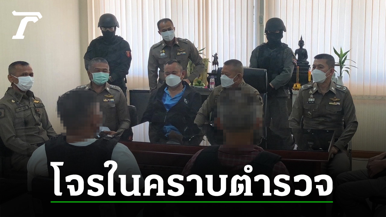 ตามลากคอ 2 โจรในคราบตำรวจ จัดฉากดักอุ้มชิงรถกระบะพ่อค้าน้ำเต้าหู้ ใช้เครื่องช็อตไฟฟ้าจี้บังคับจับมัดมือมัดเท้าซ้อมน่วมลากขึ้นรถ โชคดีเหยื่อปลดเชือกหนีออกจากรถรอดตายหวุดหวิด ที่แท้ผู้ต้องหาเป็นอดีตตำรวจยศ ด.ต.ทั้งคู่ ถูกให้ออกจากราชการมีคดีฆ่าคนตายและยาเสพติด อ้างก่อเหตุหวังประสงค์ต่อทรัพย์ หาเงินใช้หนี้ หลังเอาเงินไปสู้คดีจนหมดตัว แถมเปิดอู่ซ่อมรถยังเจ๊ง ผบช.ภ.7 สั่งขยายผลถึงผู้ร่วมขบวนการ สงสัยเชื่อมโยงแก๊งลักรถข้ามชาติจากเหตุการณ์อุกอาจ นายจีรวัตร ชำนาญเวช อายุ 25 ปี พ่อค้าน้ำเต้าหู้ ขับรถกระบะโตโยต้า 4 ประตู สีขาว ทะเบียน ขข2590 นครสวรรค์ มาตามถนนสายบ้านหัวโต่ง-ดอนกลาง ต.พระแท่น อ.ท่ามะกา จ.กาญจนบุรี ถูกคนร้ายแต่งเครื่องแบบตำรวจ 2 คน จัดฉากว่ามีอุบัติเหตุเก๋งชนรถ จยย.ล้มบนถนน เรียกให้นายจีรวัตรจอดรถ ใช้เครื่องช็อตไฟฟ้าจี้บังคับทำร้ายร่างกายจับมัดมือมัดเท้าไว้เบาะหลังแล้วขึ้นมาขับรถพาออกจากจุดเกิดเหตุ ระหว่างทางเหยื่อปลดเชือกเปิดประตูหนีรอดออกมาได้ ส่วนคนร้ายชิงเอารถกระบะขับหลบหนีไป เหตุเกิดเมื่อช่วงค่ำวันที่ 24 ก.ค. ตำรวจรู้ตัว 1 ในคนร้ายคือนายบันเทิง แตงอ่อน อายุ 51 ปี อดีตตำรวจยศ ด.ต. ถูกออกจากราชการ เคยตกเป็นผู้ต้องหาคดียิง 2 ศพผัวเมียพ่อค้าขายมะนาว จ.ราชบุรี เมื่อปี 57ความคืบหน้าตำรวจติดตามจับกุม 2 โจรในคราบตำรวจที่ก่อเหตุได้แล้วที่แท้เป็นอดีตตำรวจทั้งคู่ โดยเมื่อเวลา 11.10 น. วันที่ 27 ก.ค. ที่ สภ.ท่าเรือ อ.ท่ามะกา จ.กาญจนบุรี พล.ต.ท.ธนายุตม์ วุฒิจรัสธำรงค์ ผบช.ภ.7 พล.ต.ต.ประสพชัย มัตสยะวนิชกูล ผบก.สส.ภ.7 พล.ต.ต.ไพโรจน์ คุ้มภัย ผบก.ภ.จ.กาญจนบุรี ร่วมแถลงผลจับกุมผู้ต้องหาในคดีนี้ 2 คนคือนายบันเทิง แตงอ่อน อายุ 51 ปี อดีตตำรวจยศ ด.ต. สังกัด สภ.ท่าเรือ และนายปฏิวัติ บรรเทิงสมหวัง อายุ 50 ปี อดีตตำรวจยศ ด.ต. สังกัด สภ.เมืองกาญจนบุรี ตามหมายจับข้อหาร่วมกันชิงทรัพย์ในเวลากลางคืน โดยลวงว่าเป็นเจ้าพนักงาน โดยมีอาวุธ โดยแต่งเครื่องแบบตำรวจ ร่วมกันทำร้ายร่างกายผู้อื่น ร่วมกันหน่วงเหนี่ยวกักขัง ร่วมกันแต่งกายคล้ายเครื่องแบบตำรวจเพื่อกระทำความผิดอาญา ร่วมกันสวมเครื่องแบบเจ้าพนักงานโดยไม่มีสิทธิเพื่อกระทำความผิดอาญา ร่วมกันแสดงตนเป็นเจ้าพนักงาน และกระทำการเป็นเจ้าพนักงานโดยตนเองมิได้เป็นเจ้าพนักงาน และร่วมกันพกพาอาวุธไปในที่สาธารณะโดยไม่มีเหตุอันควร ของกลางประกอบด้วย เสื้อผ้าชุดตำรวจที่ใช้สวมใส่วันเกิดเหตุ เครื่องช็อตไฟฟ้า เชือกเปลที่ใช้มัดมือมัดเท้าผู้เสียหาย กุญแจมือ รถ จยย. 1 คัน และรถเก๋ง 1 คันพล.ต.ท.