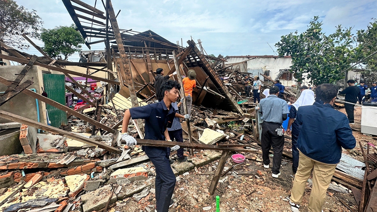 เจ้าหน้าที่โยธาธิการและผังเมือง จ.นราธิวาส นำทีมตรวจสภาพบ้านเรือนในตลาดมูโนะ ต.มูโนะ อ.สุไหงโก-ลก จ.นราธิวาส เพื่อสำรวจทรัพย์สินใต้ซากปรักหักพังและประเมินค่าความเสียหาย หลังเกิดเหตุโกดังเก็บพลุระเบิดราบเป็นหน้ากลองหลายร้อยหลัง ส่วนภาพเล็กเจ้าหน้าที่กรมสุขภาพจิตให้คำแนะนำชาวบ้านที่เริ่มมีภาวะเครียด.