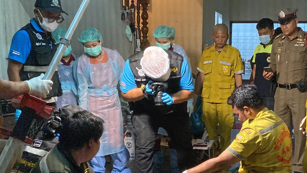 สุดสยอง พ่อคลั่งฆ่าลูกเมียดับ 3 ศพ แล้วปาดคอตัวเองหวังตายตามแต่อาการสาหัส หลังเครียดเรื่องไปค้ำประกันรถให้เพื่อนบ้านแต่ไม่ส่งค่างวด กรมบังคับคดีเตรียมยึดบ้านต้องเร่งหาเงินไปเคลียร์ ต่อมาเมียถูกแก๊งคอลเซ็นเตอร์หลอกกู้เงินทางแอปสูญเงินไปกว่า 1.7 ล้านบาท คาดเป็นปมเหตุฆ่ายกครัว ส่วนตำรวจเร่งสืบสวนล่าแก๊งนรกหลอกลวงชาวบ้าน ขณะที่กรมสุขภาพจิตพร้อมให้คำปรึกษาสายด่วน 1323 หากเกิดปัญหาชีวิต ด้านโรงเรียนเปิดรับบริจาคค่าจัดงานศพแม่-ลูกไม่ถึงครึ่งวันได้ 2 ล้าน ปิดรับบริจาคแล้วเหตุความรุนแรงในครอบครัวพ่อฆ่าลูกและเมีย 3 ศพรายนี้ เปิดเผยเมื่อเวลา 01.30 น. วันที่ 28 ส.ค. พ.ต.ต.สถามน ประเสริฐสุวรรณ สว. (สอบสวน) สภ.บางแก้ว จ.สมุทรปราการ รับแจ้งเหตุทะเลาะกันในครอบครัวมีผู้บาดเจ็บและเสียชีวิตภายในบ้านเลขที่ 50/323 หมู่บ้านทิพย์มงคล 1 หมู่ 9 ต.บางแก้ว อ.บางพลี ไปตรวจสอบพร้อมด้วยเจ้าหน้าที่ชุดสืบสวน สภ.บางแก้ว แพทย์ เจ้าหน้าที่กองพิสูจน์หลักฐาน และเจ้าหน้าที่มูลนิธิร่วมกตัญญูที่เกิดเหตุเป็นทาวน์เฮาส์ 3 ชั้น ที่ชั้นล่างหน้าประตูบ้านพบผู้เสียชีวิต 2 ศพทราบชื่อ น.ส.วิภาพร ราชา อายุ 45 ปี และ ด.ช.ปุณณพัตน์ ดอกไม้ อายุ 11 ขวบ สองแม่ลูก สภาพถูกมีดปาดคอเป็นแผลเหวอะเลือดไหลนองพื้น ที่ชั้น 2 แบ่งเป็น 2 ห้องนอน ห้องแรกพบศพ ด.ช.บุณญานนท์ ดอกไม้ อายุ 13 ปี ลูก น.ส.วิภาพร ถูกมีดฟันที่หน้าเป็นแผลขนาดใหญ่ 3 แผล บริเวณที่ลำคอและตามร่างกายหลายสิบแผล ห้องนอนที่สองพบนายสาณิช ดอกไม้ อายุ 43 ปี ผู้ก่อเหตุเป็นสามี น.ส.วิภาพรและพ่อเด็กที่เสียชีวิต ใช้มีดอีโต้ปาดคอและข้อมือได้รับบาดเจ็บอาการสาหัสนอนหายใจรวยริน อาสามูลนิธิร่วมกตัญญูเร่งห้ามเลือดและปฐมพยาบาลนำส่งโรงพยาบาลเปาโล สมุทรปราการ ที่พื้นห้องนอนพบมีดอีโต้เปื้อนเลือดที่ใช้ก่อเหตุตกอยู่ข้างที่นอน เจ้าหน้าที่เก็บไว้เป็นหลักฐานสอบถาม น.ส.ฐารินี เส็งสันต์ อายุ 46 ปี หัวหน้างานนายสาณิช ทราบว่า นายสาณิชทำงานเป็นหัวหน้าฝ่ายโลจิสติกส์ โกดังย่านบางพลี ช่วงเที่ยงคืนวันที่ 28 ส.ค. นายสาณิชโทร.หาบอกว่าลงมือฆ่าลูกเมียตัวเองแล้ว ตนรีบเดินทางไปที่บ้านเกิดเหตุ พบศพสยดสยองแม่ลูกนอนตายที่ประตูหน้าบ้าน ไม่กล้าเข้าไปในบ้านรีบแจ้งตำรวจมาตรวจสอบ ก่อนหน้านี้นายสาณิชเคยมาปรึกษาว่า กรมบังคับคดีเตรียมจะยึดบ้าน แต่เรื่องนี้ตนให้คำปรึกษาจนมีทางออกแล้วหาเงินที่จะไปเคลียร์อีกไม่มากนัก ภายหลังมาทราบว่าภรรยานายสาณิชถูกแก๊งคอลเซ็นเตอร์หลอกให้โอนเงินกว่า 1.7 ล้านบาท คาดเป็นปมเหตุให้นายสาณิชเกิดความเครียดก่อเหตุฆ่า