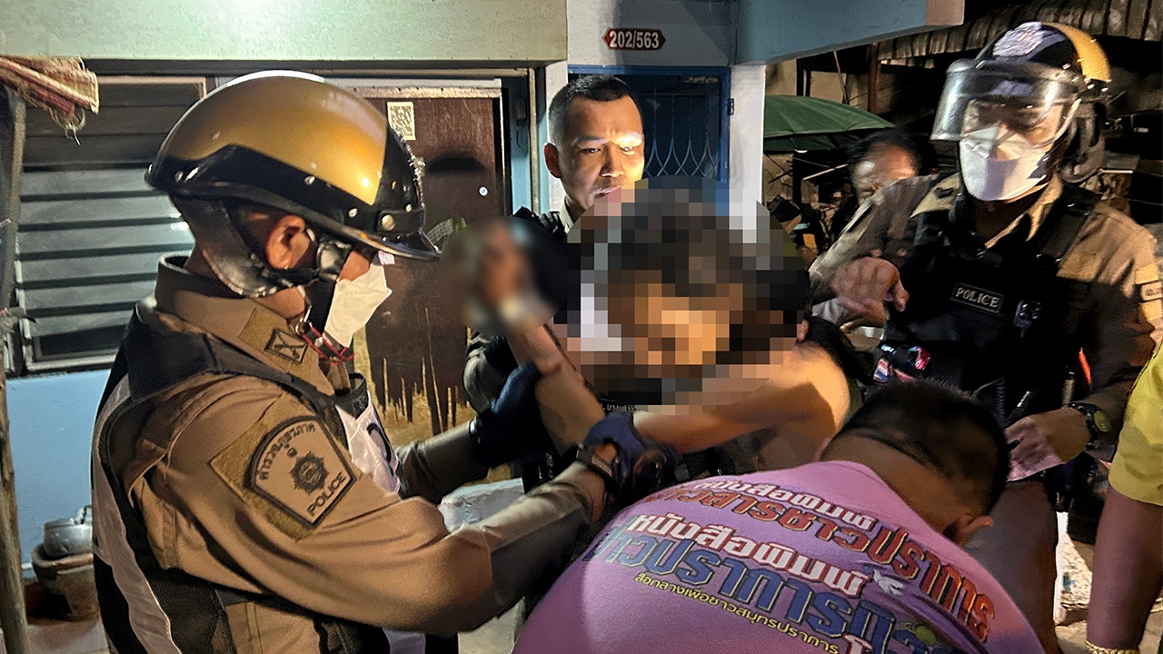 หนุ่มป่วยจิตคลั่งแทงผัวดับและเมียท้อง 8 เดือนเจ็บ ขณะลักตัดต้นกัญชาของเพื่อนบ้าน สองผัวเมียขี่รถ จยย.ผ่านถาม “ทำอะไร” กลับไม่พอใจ ชักมีดไล่แทง ผัวเร่งเครื่องหนีแต่รถเสียหลักล้มปรี่จะแทงเมียท้องแก่ ผัวกระโดดรับคมมีดแทนปักอกเสียชีวิต ผู้ก่อเหตุเผ่นหนีขึ้นไปอยู่บนหลังคาบ้าน ตำรวจเกลี้ยกล่อมกว่า 2 ชม. ไม่เป็นผลยิงกระสุนยางและปืนไฟฟ้าเข้าชาร์จตัวสำเร็จ มีอาการป่วยจิตและไม่กินยาจนอาการกำเริบเหตุหนุ่มป่วยจิตแทงชาวบ้านดับรายนี้ เปิดเผยเมื่อเวลา 00.30 น. วันที่ 5 ก.ย. ร.ต.อ.วรกฤติ พาเรือง รอง สว. (สอบสวน) สภ.บางเสาธง จ.สมุทรปราการ รับแจ้งเหตุชายถูกแทงได้รับบาดเจ็บหน้าบ้านเลขที่ 202/220 หมู่บ้านการเคหะเมืองใหม่บางพลี ซอยเทศบาลบางเสาธง 6 หมู่ 1 ต.บางเสาธง ไปตรวจสอบพร้อมตำรวจฝ่ายสืบสวน อาสาสมัครมูลนิธิร่วมกตัญญู และแพทย์โรงพยาบาลบางบ่อที่เกิดเหตุพบนายพรเทพ ศรีวรรณ อายุ 29 ปี อยู่บ้านเลขที่ 84 หมู่ 3 ต.เมืองสรวง อ.เมืองสรวง จ.ร้อยเอ็ด ถูกมีดแทงกลางอก 1 แผล เลือดไหลนองพื้นหายใจรวยริน อาการสาหัส เจ้าหน้าที่เร่งช่วยชีวิตและรีบนำส่งโรงพยาบาล แต่เสียชีวิตระหว่างทาง ส่วนผู้บาดเจ็บทราบชื่อ น.ส.ศิริพร สิงห์ขันธุ์ อายุ 37 ปี อยู่บ้านเลขที่ 1/1 หมู่ 8 ต.หนองเอี่ยน อ.คำชะอี จ.มุกดาหาร ภรรยานายพรเทพตั้งครรภ์ได้ 8 เดือน ได้รับบาดเจ็บที่หัวเข่าทั้งสองข้าง ใกล้กันพบรถ จยย.ของผู้ตายล้มอยู่สอบถาม น.ส.ศิริพร สิงห์ขันธุ์ ภรรยาผู้เสียชีวิตทราบว่า ตนและสามีพักอยู่บ้านเช่าในซอยเดียวกันห่างไป 4 หลัง ขณะสามีขี่รถ จยย.กลับบ้าน ส่วนตนนั่งซ้อนท้าย เมื่อถึงบ้านที่เกิดเหตุเห็นชายยืนตัดต้นกัญชาของเพื่อนบ้าน สามีชะลอความเร็วถามว่า “ทำอะไร” คนร้ายถามกลับมาว่า “มึงเป็นใคร” จากนั้นชักมีดปรี่เข้ามาแทง สามีเร่งเครื่องรถหนีแต่ไปไม่ไกลรถเสียหลักล้ม คนร้ายวิ่งตามมาทันจะแทงตน สามีกระโดดเข้ามาขวางรับคมมีดแทนปักที่หน้าอก ก่อนคนร้ายวิ่งหลบหนีไปส่วนนายจำรูญ พูลสวัสดิ์ อายุ 47 ปี เจ้าของบ้านที่เกิดเหตุเปิดเผยว่า ปลูกต้นกัญชาไว้ตั้งแต่รัฐบาลประกาศให้ปลูกได้เสรี ปลูกไว้หน้าบ้านเพื่อแบ่งปันใครอยากจะมาเด็ดไปปรุงอาหารก็อนุญาต ส่วนผู้ก่อเหตุเป็นชายสติไม่ดี พักอยู่ใกล้กัน ช่วงค่ำตนยังคุยกันอยู่ว่าจะตัดต้นกัญชาทิ้งแล้ว เนื่องจากไม่ค่อยจะนำมาใช้ประโยชน์ มีแต่คนแปลกหน้ามาตัดอยู่บ่อยครั้งกลัวเรื่องความปลอดภัย กระทั่งมาเกิดเหตุร้ายในครั้งนี้ต่อมาตำรวจทราบผู้ก่อเหตุชื่อนายอนุ บุญกลั่นสอน อายุ 33 ปี พักอยู่บ้านเลขที่ 202/56 หมู่บ้านการเคหะเมืองใหม่บางพลี ห