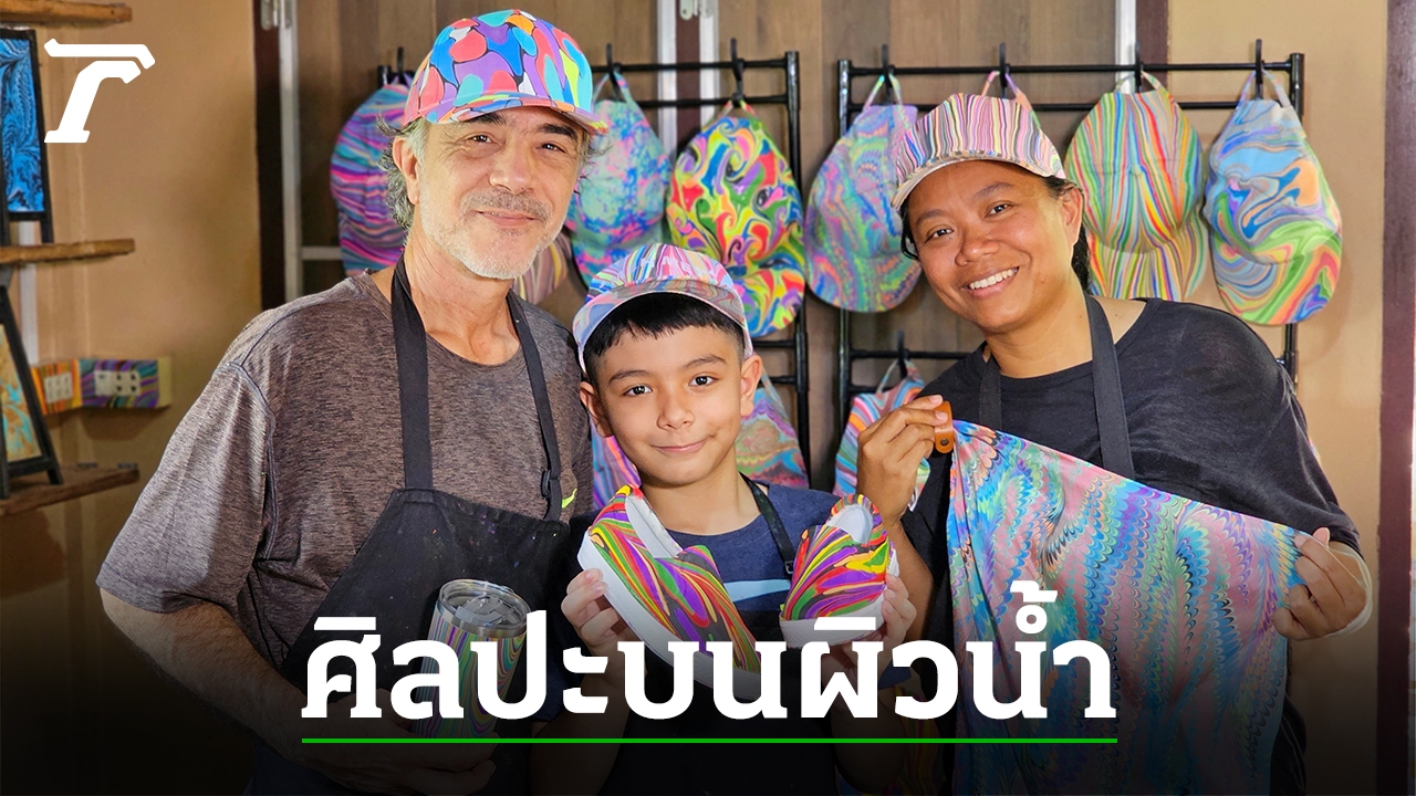 หมวก รองเท้า ผ้าคลุม ตุ้มหู และแก้วเก็บอุณหภูมิ ถูกแต่งแต้มลวดลายตามจินตนาการ สีสันสวยงาม ด้วยเทคนิคศิลปะบนผิวน้ำเป็นฝีมือของ ด.ช.เมเมท บดินทร์ อาร์นิอาร์ขิค อายุ 10 ขวบ ลูกครึ่งไทย-ตุรกี ชาวบ้าน ต.หนองปลาหมอ อ.บ้านโป่ง จ.ราชบุรี ที่สร้างรายได้ระหว่างเรียนโดยมี นายอาซิม อาร์นิอาร์ขิค ชาวตุรกี และ น.ส.ไพพรรณ แก้วมรกต อายุ 46 ปี พ่อและแม่เป็นผู้ถ่ายทอดความรู้สำหรับขั้นตอนการทำไม่ได้ยุ่งยากอะไร แต่ต้องใช้ หลักการของสี และจินตนาการ เป็นสำคัญเริ่มจากการเตรียมพื้นผิวของชิ้นงาน ไม่ว่าจะเป็นกระดาษ ผ้า แผ่นไม้ โลหะ หรือชิ้นหนัง รวมถึงวัสดุอื่นที่ต้องการ จากนั้นเตรียมในส่วนของสี โดยการหยด สะบัด และการวาดลวดลายต่างๆลงบนพื้นผิวน้ำเจล ก่อนจะนำวัสดุผลิตภัณฑ์ที่ต้องการมาจุ่มลงในสี แล้วยกขึ้นมาใส่กระบะ ผึ่งให้สีแห้งสนิท ก็จะได้ผลิตภัณฑ์พร้อมส่งจำหน่ายน.ส.ไพพรรณ แก้วมรกต อายุ 46 ปี เปิดเผยว่า ศิลปะบนผิวน้ำ หรือ อิบบรู อาร์ต (Ebru Art) หรือ มาร์บลิง อาร์ต (Marbling Art) เป็น ศิลปะการเพนต์ภาพแบบโบราณของชาวตุรกีตนได้มีโอกาสเรียนรู้การทำเมื่อครั้งที่ย้ายตามสามีไปอยู่ที่ประเทศตุรกี ต่อมาย้ายครอบครัวกลับมาอยู่ประเทศไทย จึงนำมาทำเป็นงานอดิเรกควบคู่ไปกับการเปิดร้านอาหาร แล้วถ่ายทอดสู่ลูกชายเพื่อต้องการเสริมสร้างจินตนาการ และพัฒนาสมองด้วยศิลปะด.ช.เมเมท เปิดเผยว่า ส่วนตัวมองว่าเป็นงานศิลปะที่ให้ทั้งความสวย และอิสระทางความคิด ใช้จินตนาการในการวาดลวดลายได้อย่างเต็มที่ อีกทั้งยังสามารถนำมาประยุกต์สร้างชิ้นงานใหม่ๆ และจำหน่ายสร้างอาชีพเสริมให้กับตัวเองได้สำหรับเงินที่ได้จากการจำหน่าย ส่วนหนึ่งจะเก็บเป็นทุนการศึกษา และอีกส่วนจะนำไปซื้อขนมหรือสิ่งของที่อยากได้ เพื่อแบ่งเบาภาระครอบครัวโดยกลุ่มลูกค้ามีทุกเพศทุกวัย รวมไปถึงชาวต่างชาติ ผ่านช่องทางการจำหน่ายด้วยสื่อสังคมออนไลน์ นอกจากนั้นยังเปิดสอนการทำศิลปะบนผิวน้ำ ให้แก่ผู้ที่สนใจต่อยอดสร้างอาชีพผู้ที่สนใจสามารถติดต่อได้ที่เพจเฟซบุ๊ก “Baanthai Ebru Art” หรือโทรศัพท์หมายเลข 08–4725–6636.เดชา โพธิ์ตั้งธรรมคลิกอ่านคอลัมน์ "มองทั่วทิศเมืองไทย" เพิ่มเติม