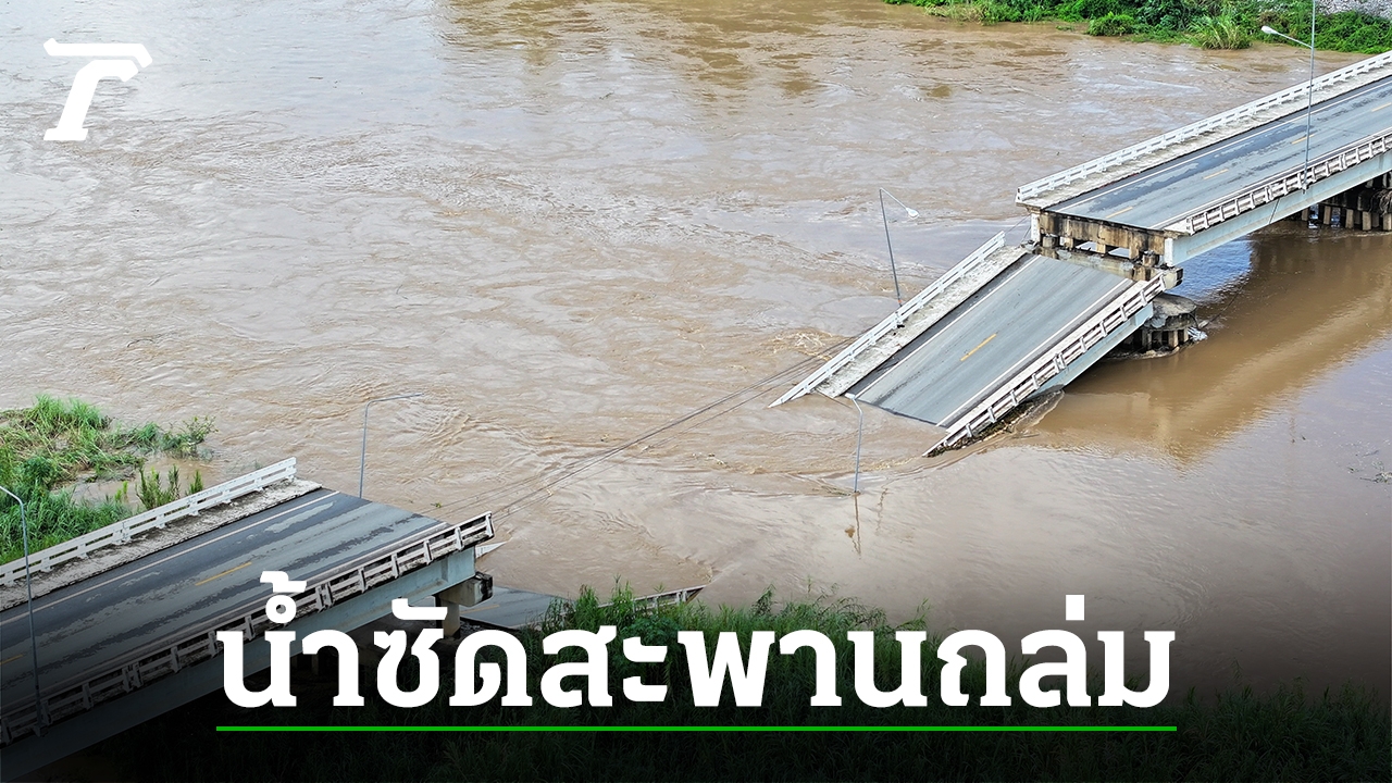 กระแสน้ำซัดสะพานถล่มที่กําแพงเพชร แม่น้ำป่าสักเกิดดินสไลด์กลืนบ้าน-จยย. (คลิป)