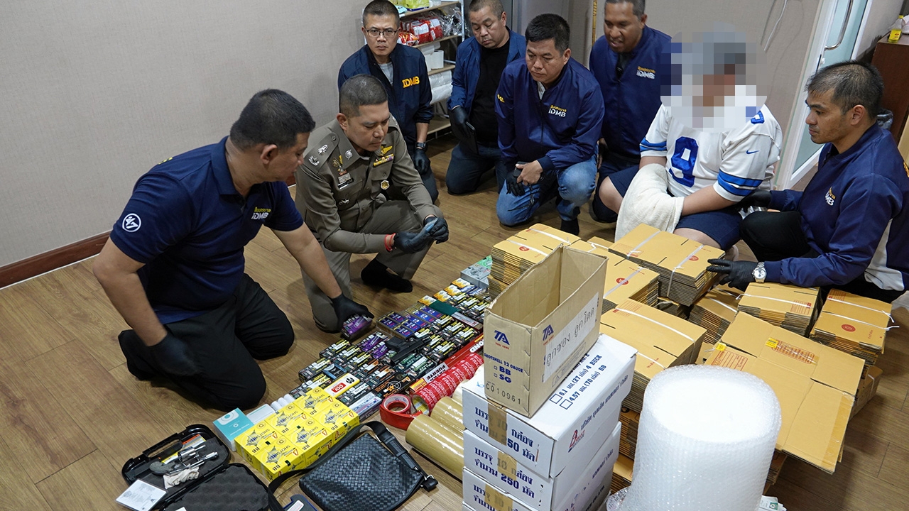 ชุดสืบสวน บช.น.จับกุมนายภัสสรกรณ์ หรือ นิกกี้ เธียรธนาวิทย์ อายุ 27 ปี (เสื้อขาว) พร้อมของกลางปืนและกระสุนปืน 2,765 นัด ยึดของกลางได้ที่บ้านย่านบางแค กทม. หลังจากขยายผลจับ 3 ผู้ต้องหาค้าปืนและกระสุนปืนให้มือกราดยิงเด็กชายวัย 14 ปี พบว่ามีส่วนเกี่ยวข้องขายกระสุนปืนเครือข่ายเดียวกับผู้ต้องหา ที่ถูกจับได้ก่อนหน้านี้.