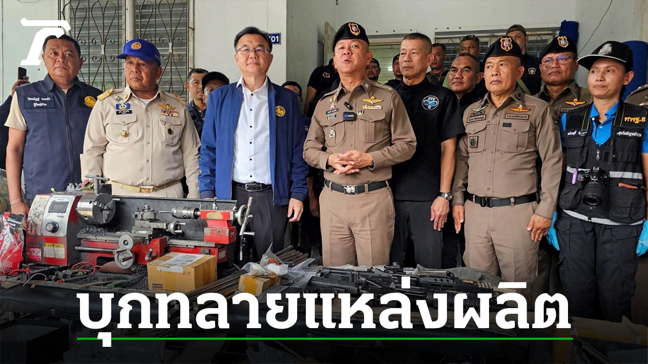 ภาค 8 บุกทลายแหล่งผลิตลำกล้องปืนแบลงก์กันรายใหญ่ แอบเช่าบ้านกลางเมืองคอนตั้งเป็น โรงงานผลิตส่งขายทางออนไลน์ทั่วไทย ดัดแปลงกั้นห้องเก็บเสียงไม่ให้เล็ดลอดออกมา ยึดของกลางลำกล้องปืนขนาดต่างๆ พร้อมอุปกรณ์การผลิตเพียบ เร่งออกหมายจับ “บ่าว เคหะ” เอเย่นต์ปืนเถื่อนตัวเอ้ แฉประวัติสุดแสบจบแค่ชั้น ม.3 แต่เรียนรู้การทำปืนทางยูทูบจนเชี่ยวชาญตำรวจลุยค้นโรงงานผลิตลำกล้องปืนแบลงก์กัน ส่งขายออนไลน์ เมื่อเวลา 06.00 น. วันที่ 11 ต.ค. นายขจรเกียรติ รักพานิชมณี ผวจ.นครศรีธรรมราช พล.ต.ต.สมชาย ซื่อต่อตระกูล ผบก.ภ.จ.นครศรีธรรมราช สืบสวน ภ.8 ชุดสืบสวน กก.สส.ภ.จ.นครศรีธรรมราช กว่า 20 นาย สนธิกำลังนำหมายค้นศาลจังหวัดนครศรีธรรมราช เลขที่ 492/2566 ลงวันที่ 11 ต.ค.2566 เข้าตรวจค้นบ้านเช่าเลขที่ 556/401 ซอยสาย 3 หมู่บ้านการเคหะอ้อมค่าย 2 หมู่ 5 ต.ปากพูน อ.เมืองนครศรีธรรมราช หลังสืบทราบเป็นแหล่งผลิตอาวุธปืนและลำกล้องปืนหลายชนิดส่งขายทางออนไลน์เมื่อกำลังเจ้าหน้าที่เดินทางไปถึง พบประตูบ้านปิดล็อกไม่มีใครอยู่ในบ้าน พังประตูบุกเข้าไปตรวจค้น ภายในบ้านติดตั้งฉนวนกันเสียงเพื่อเก็บเสียงขณะทำงาน ติดตั้งกล้องวงจรปิดหน้าบ้านและรอบบ้านรวม 5 ตัว พร้อมเซิร์ฟเวอร์กล้องวงจรปิดและจอมอนิเตอร์ดูความเคลื่อนไหวหน้าบ้านและรอบบ้าน ตรวจยึดอุปกรณ์ผลิต อาทิ แท่นกลึง แท่นเจาะ ตู้เชื่อม ท่อเหล็กขนาดต่างๆสำหรับใช้ผลิตลำกล้องปืนจำนวนมาก รวมทั้งลำกล้องปืนหลายขนาดที่ผลิตเสร็จแล้ววางกองอยู่หลายร้อยอัน กระสุนปืน .38 นับร้อยนัด และยังพบปืนแบลงก์กัน 3 กระบอก ลำกล้องปืนที่ตัดดัดแปลงให้ประกอบเข้ากับปืนแบลงก์กัน เตรียมแพ็กใส่ห่อพัสดุส่งให้ลูกค้าผ่านบริษัทขนส่งเอกชน เก็บหลักฐานทั้งหมดไปตรวจสอบ และประสานเจ้าหน้าที่พิสูจน์หลักฐาน จ.นครศรีธรรมราช ตรวจเก็บดีเอ็นเอและหลักฐานทางนิติวิทยาศาสตร์ เพื่อดำเนินการตรวจสอบหาตัวผู้เช่าบ้านหลังนี้ต่อไปพล.ต.ต.สมชาย ซื่อต่อตระกูล ผบก.ภ.จ.นครศรีธรรมราช เปิดเผยว่า ตำรวจชุดสืบสวนเฝ้าติดตามพฤติการณ์ของผู้ต้องสงสัยรายนี้มานานแล้ว ทราบชื่อนายวีระยุทธ์ พรรณรังสี อายุ 32 ปี ฉายา”บ่าว เคหะ” พัวพันยาเสพติดและอาวุธปืน เคยติดคุกในคดีดังกล่าวมาแล้ว ภายหลังพ้นโทษมาเช่าบ้านหลังนี้นานกว่า 2 ปี ผลิตลำกล้องปืนดัดแปลงใส่ปืน แบลงก์กัน ส่งขายให้ลูกค้าทางออนไลน์ มีลูกค้าสั่งซื้อลำกล้องปืนจำนวนมาก ประวัตินายวีระยุทธ์ จบเพียงชั้น ม.3 เท่านั้น ไปเรียนวิทยาลัยเทคนิคแห่งหนึ่งแค่ 3 เดือน แต่ไม่ยอมเรียนต่อ มีความสนใจเรื่องผลิตปืน เรียนรู้เองทางยูทูบแ