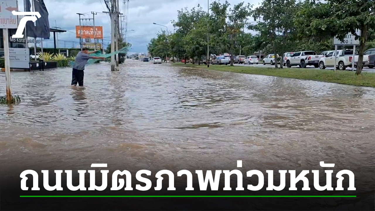โคราชอ่วม ฝนถล่มน้ำท่วมถนนมิตรภาพสูงกว่าครึ่งเมตร รถติดหนึบยาวหลายกิโลเมตร ระทึกน้ำป่าซัดรถปิกอัพส่งพัสดุเอกชนขณะผ่านฝายน้ำล้น โดนกระแสน้ำเชี่ยวสูงกว่า 2 เมตรซัดจมหายไปในคลองไกลกว่า 100 เมตร คนขับดับคาซาก ส่วนที่เมืองพิษณุโลก แม่น้ำน่านรับน้ำเหนือเพิ่มกว่า 1 เมตร ซัดแพอาหารขนาดใหญ่ริมตลิ่งแตกจมน้ำ ด้านปราจีนบุรี น้ำท่วม รพ.เจ้าพระยาอภัยภูเบศร เจ้าหน้าที่ระดมเครื่องสูบน้ำเร่งระบายออกหลายจังหวัดยังเผชิญกับน้ำท่วม ชาวบ้านเดือดร้อนแสนสาหัส สถานการณ์เมื่อวันที่ 11 ต.ค.ที่ จ.พิษณุโลก น้ำเหนือที่ไหลลงแม่น้ำน่าน ช่วงไหลผ่านตัวเมืองพิษณุโลกเพิ่มสูงขึ้นอย่างต่อเนื่อง เช้าวันนี้ระดับน้ำแม่น้ำน่านที่สถานีวัดระดับน้ำ N5A อ.เมืองพิษณุโลก เพิ่มขึ้นอีก 1 เมตร ส่งผลให้แพอาหารขนาดใหญ่ชื่อ “แพน้ำน่าน” หน้าวัดจันทร์ตะวันออกที่เจ้าของปิดร้านไปก่อนหน้านี้ ถูกน้ำซัดแพแตกจมน้ำเสียหายหนัก ส่วน อ.วังทอง จ.พิษณุโลก แม่น้ำวังทองเซาะพนังกั้นน้ำบริเวณบ้านวังพิกุล หมู่ 2 ต.วังพิกุล จนขาด น้ำไหลทะลักเข้าท่วมพื้นที่การเกษตร อบต.วังพิกุลประสานขอรถแบ็กโฮจาก อบจ.พิษณุโลกมาช่วยซ่อมแซม ป้องกันน้ำท่วมพื้นที่การเกษตรกว่า 2,500 ไร่ที่ จ.นครสวรรค์ ชาวบ้านหมู่ 5 บ้านท่ามะพลับ ต.บางเคียน อ.ชุมแสง ที่อาศัยริมคลองท่ามะนาว ลำน้ำสาขาแม่น้ำยมต้องเร่งขนย้ายเครื่องมือเกษตรรถยนต์ รถ จยย. และสิ่งของที่จำเป็นหนีน้ำกันโกลาหล หลังระดับน้ำในคลองเพิ่มขึ้นอีกกว่า 30 ซม. สาเหตุมาจากแม่น้ำยมหนุนสูง ทำให้น้ำในคลองระบายไม่ได้ เอ่อท่วมบ้านอย่างรวดเร็ว นางสายสมร เก่งรอด ชาวบ้านที่ประสบอุทกภัย เผยว่า ก่อนหน้านี้น้ำในคลองขึ้นๆลงๆ แต่ช่วง 2 วันที่ผ่านมาน้ำเพิ่มขึ้นสูงมาก เมื่อคืนที่ผ่านมาสูงกว่า 30 ซม. ต้องนำโต๊ะเก้าอี้มาตั้งวางข้าวของหนีน้ำส่วนภาคอีสาน ที่ จ.นครราชสีมา ฝนที่ตกสะสมต่อเนื่องมา 2 วันติด ทำให้น้ำไหลท่วมผิวจราจรถนนมิตรภาพบริเวณหน้าตลาดเทิดไท อ.เมืองนครราชสีมา ทั้งฝั่งขาเข้าและขาออก โดยเฉพาะฝั่งขาออกน้ำสูง 50-60 ซม. ระยะทางกว่า 400 เมตร รถยนต์ทุกชนิดสัญจรผ่านไม่ได้ รถติดยาวกว่า 3 กม. ด้านนายสยาม ศิริมงคล ผวจ.นครราชสีมา นำคณะลงพื้นที่ไปตรวจสถานการณ์น้ำท่วมริมคลองลำปรุ ต.บ้านใหม่ อ.เมืองนครราชสีมา หลังหลายหมู่บ้านถูกน้ำท่วมหนักเฉลี่ย 70 ซม.ถึง 1 เมตร ขณะที่นางมะลิวัลย์ บางนิ่มน้อย นายกเทศมนตรีเทศบาลตำบลบ้านใหม่ กล่าวว่า ต.บ้านใหม่เป็นที่ลุ่มต่ำเป็นจุดรับน้ำจากหลายทาง น้ำท่วมปีนี้ถือว่าหนักเทียบเท่าปี 2553 หรือราว 13 ปีมาแล้ว ช่วงเที่ยงวันเดียว