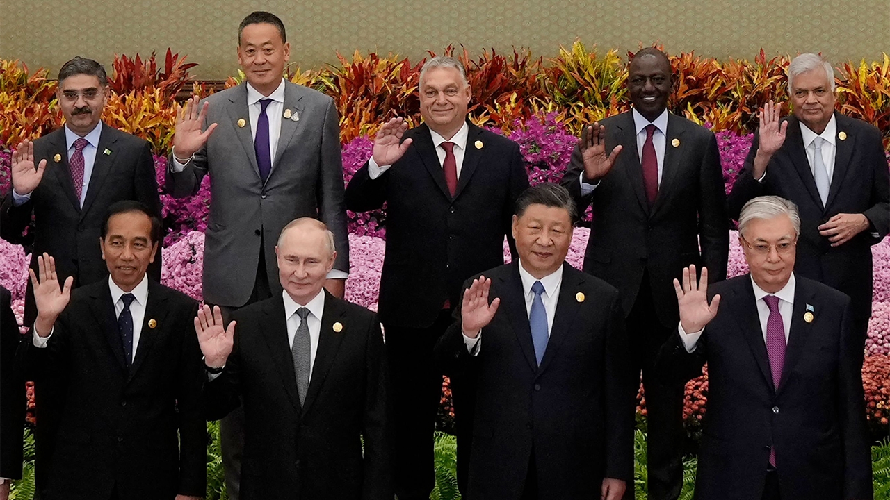 นายเศรษฐา ทวีสิน นายกฯ ถ่ายรูปหมู่กับบรรดาผู้นำ ในพิธีเปิดการประชุมเวทีข้อริเริ่มสายแถบและเส้นทางครั้งที่ 3 ที่นายสี จิ้นผิง ปธน.จีน เป็นเจ้าภาพ มีนายวลาดิเมียร์ ปูติน ปธน.รัสเซีย เข้าร่วม ณ มหาศาลาประชาคม กรุงปักกิ่ง.