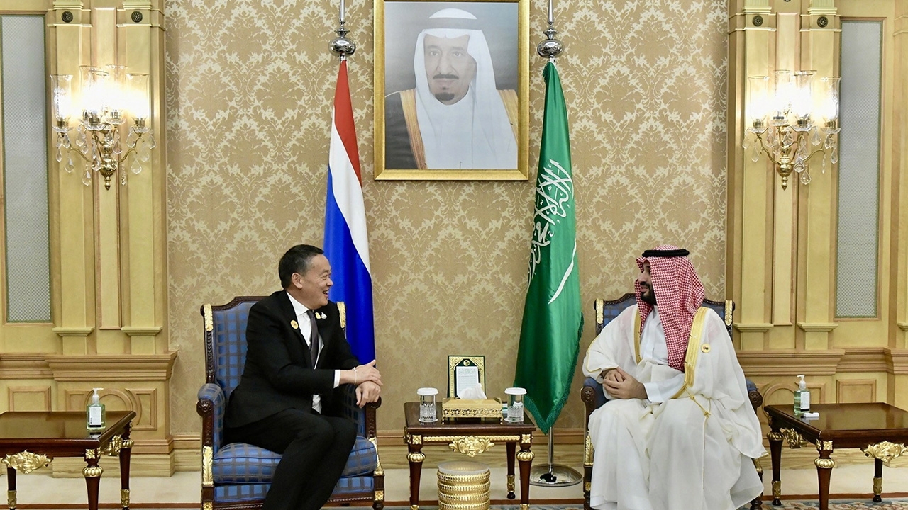 นายเศรษฐา ทวีสิน นายกรัฐมนตรีและ รมว.คลัง นั่งหารือทวิภาคีอย่างใกล้ชิดกับเจ้าชายมูฮัมหมัด บิน ซัลมาน บิน อับดุล อะซีซ อาล ซะอูด มกุฎราชกุมาร และนายกรัฐมนตรีแห่งราชอาณาจักรซาอุดีอาระเบีย ในโอกาสเดินทางไปเข้าร่วมประชุมสุดยอดอาเซียน-คณะมนตรีความร่วมมือ รัฐอ่าวอาหรับครั้งที่ 1 ที่กรุงริยาด ซาอุดีอาระเบีย.