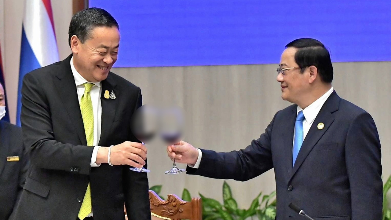นายเศรษฐา ทวีสิน นายกฯและ รมว.คลัง ชนแก้วเป็นพิธีกับนายสอนไซ สีพันดอน นายกฯ สปป.ลาว ระหว่างงานเลี้ยงต้อนรับในการเดินทางเยือน สปป.ลาว อย่างเป็นทางการ โดยนายเศรษฐาเข้าพบทั้งนายกฯ, ประธานประเทศ, ประธานสภาฯ สปป.ลาว เจรจาความร่วมมือทั้งด้านการค้าการลงทุนสุดชื่นมื่น.อ่าน “คอลัมน์หนังสือพิมพ์ไทยรัฐ” ทั้งหมดที่นี่
