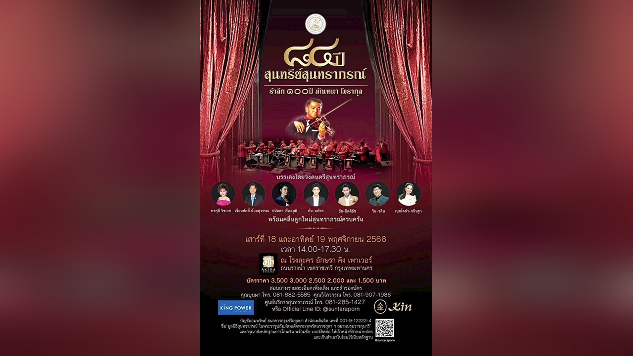 กลับมาอีกครั้งกับอมตะ “คอนเสิร์ตสุนทรีย์สุนทราภรณ์” โดยมูลนิธิสุนทราภรณ์ ในพระราชูปถัมภ์สมเด็จพระเทพรัตนราชสุดาฯ สยามบรมราชกุมารีสำหรับปีนี้ครบ 84 ปี จึงใช้ชื่อ “คอนเสิร์ต ๘๔ ปี สุนทรีย์สุนทราภรณ์” ยังคงรูปแบบเดิมที่สร้างความประทับใจให้แก่แฟนเพลงสุนทราภรณ์เช่นเดิมนอกจากบทเพลงอันไพเราะ ท่ามกลางฉากแสง สี เสียง และภาพประกอบงดงามตระการตาแล้วยังจะได้ร่วมรำลึกถึง “คุณมัณฑนา โมรากุล” นักร้องนำฝ่ายหญิงยุคบุกเบิกของวงสุนทราภรณ์ ซึ่งได้รับยกย่องให้เป็น “ศิลปินแห่งชาติ” สาขาศิลปะการแสดง (เพลงไทยสากล-ขับร้อง) ประจำปี 2552 อีกด้วยผลงานที่ท่านได้ขับร้องไว้ในอดีตยังคงตราตรึงอยู่ในความทรงจำของแฟนเพลงทั่วประเทศ ก็จะได้นำกลับมาถ่ายทอดให้ดื่มด่ำประทับใจกันอีกครั้งยังมีศิลปินรับเชิญระดับคุณภาพคับแก้วอีก 5 ท่าน มาร่วมขับขานเสียงเพลงมอบความสุขแก่ทุกท่าน ได้แก่ คุณกัน-นภัทร อินทร์ใจเอื้อ, คุณปนัดดา เรืองวุฒิ, คุณธัช-กิตติธัช แก้วอุทัย แชมป์รายการเพลงเอกซีซัน 1คุณวิน-วศิน พรพงศา แชมป์รายการ the Golden Song เวทีเพลงเพราะซีซัน 2 และน้องเบลโลล่า-กนิษฐา ศรีลุปะบาตร ผู้ครองถ้วยพระราชทานจากรายการ the Golden Song ซีซันล่าสุด“คอนเสิร์ต ๘๔ ปี สุนทรีย์สุนทราภรณ์” รำลึก 100 ปี มัณฑนา โมรากุล จะจัดขึ้น 2 รอบ ในวันเสาร์ที่ 18 และอาทิตย์ที่ 19 พฤศจิกายนนี้ ณ โรงละครอักษรา คิง เพาเวอร์ (ถนนรางน้ำ) เวลา 14.00 น.เป็นต้นไปรีบจองบัตรก่อนที่นั่งหมดได้ที่ศูนย์ บริการสุนทราภรณ์ โทร.08-1285-1427 หรือ Line Official : @suntaraporn บัตรราคา 3,500-3,000-2,500-2,000 และ 1,500 บาท รายได้หลังหักค่าใช้จ่ายนำสมทบการดำเนินงานของมูลนิธิสุนทราภรณ์ฯ.‘‘แจ๋วริมจอ’’jaewrimjor@gmail.comคลิกอ่านคอลัมน์ “ทีวีบันเทิง” เพิ่มเติม