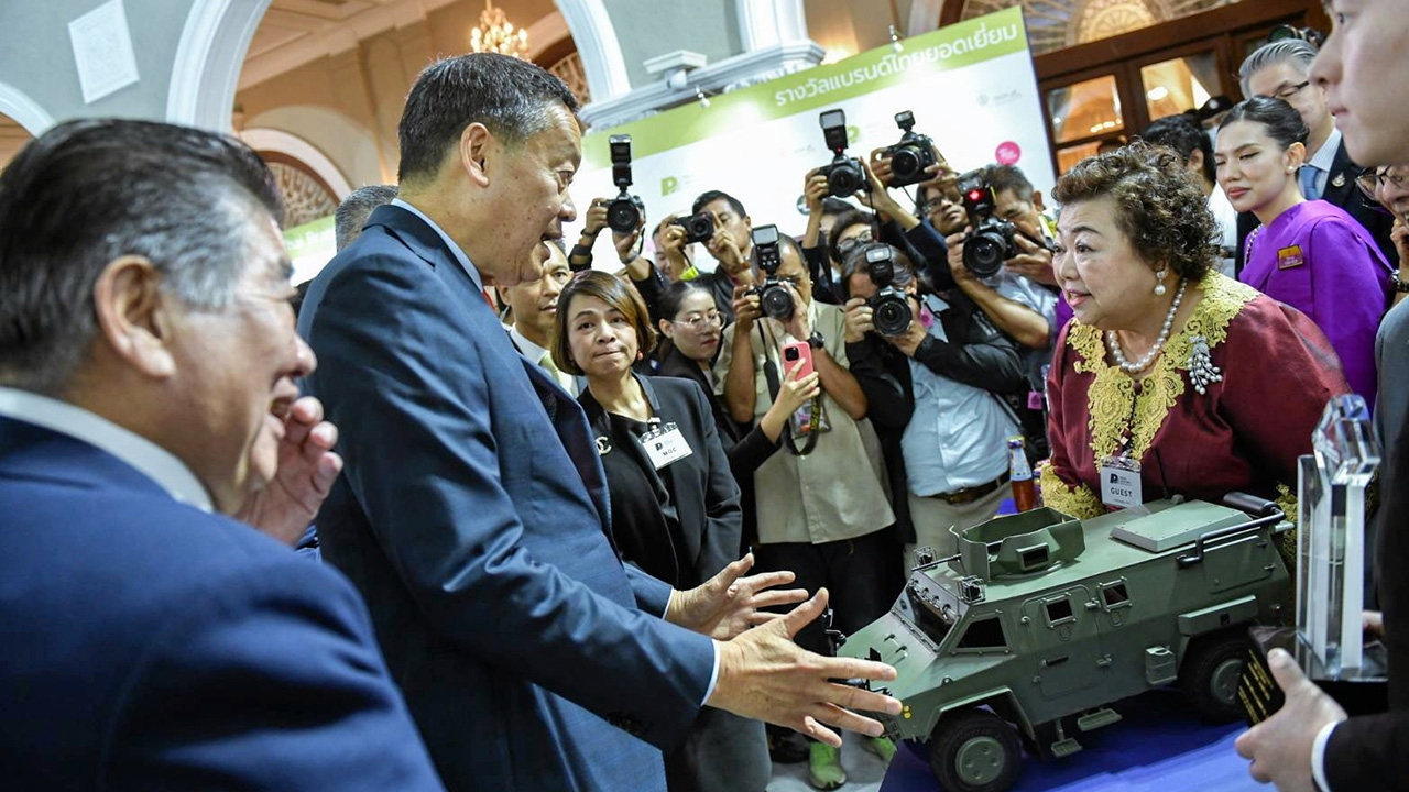 นายเศรษฐา ทวีสิน นายกฯและ รมว.คลัง เดินชมบูธที่นางนพรัตน์ กุลหิรัญ เจ้าของฉายา “มาดามรถถัง” นำมาแสดง ที่ตึกสันติไมตรี ทำเนียบรัฐบาล ระหว่างเป็นประธานพิธีมอบรางวัลผู้ประกอบธุรกิจส่งออกดีเด่น ปี 2566 (Prime Minister’s Export Award 2023) เป็นรางวัลเชิดชูผู้ประกอบการไทยที่มุ่งมั่นทุ่มเทพัฒนาสินค้า.อ่าน “คอลัมน์หนังสือพิมพ์ไทยรัฐ” ทั้งหมดที่นี่