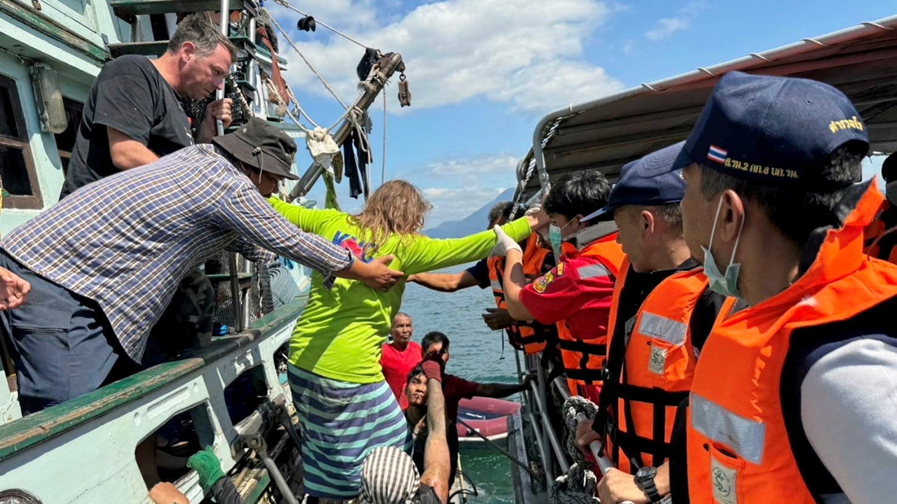 เรือประมงพรสุปราณี 9 ช่วยเหลือนักท่องเที่ยวต่างชาติและลูกเรือคนไทย 16 ชีวิต ส่งต่อให้เจ้าหน้าที่พากลับขึ้นฝั่งท่าเรือคุระบุรี จ.พังงา หลังเรือนำเที่ยวแบบดำน้ำลึก (Scuba diving) ชื่อ “เรือสวรรค์ทัวร์” ถูกคลื่นยักษ์ซัดอับปางกลางทะเลอันดามัน ใกล้เกาะตอลินลา อุทยานแห่งชาติหมู่เกาะสุรินทร์ มีผู้สูญหาย 2 คน.
