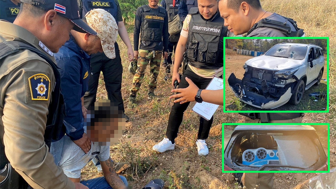 ตำรวจ สภ.ด่านแม่แฉลบ อ.ศรีสวัสดิ์ จ.กาญจนบุรี ร่วมกับเจ้าหน้าที่ฝ่ายปกครองอำเภอศรีสวัสดิ์และ อส. บุกรวบนายปรีชา เทพทอง อายุ 45 ปี ผู้ต้องหาตามหมายจับคดีทำให้เสียทรัพย์ได้ภายในบริเวณบ้านหมู่ 2 ต.ด่านแม่แฉลบ อ.ศรีสวัสดิ์ หลังอาละวาดไล่ทุบรถชาวบ้านพังเสียหาย (ภาพเล็ก) ค้นบ้านเจอทั้งมีด ขวานและปืนซุกซ่อนอยู่.อ่าน “คอลัมน์หนังสือพิมพ์ไทยรัฐ” ทั้งหมดที่นี่