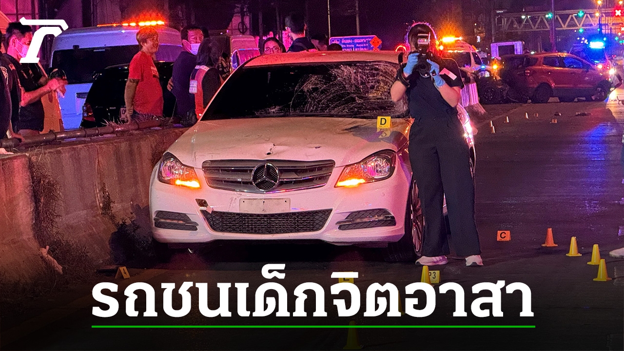 อาลัย “น้องทู” เด็กนักเรียน ป.6 จิตอาสาติดตามพ่อ-ลุงทำงานกู้ภัย ออกช่วยโบกรถให้ทีมกู้ภัยช่วยเหลือรถยนต์ยางแตกจอดกลางถนน ถูกเก๋งซิ่งชนท้ายกระแทกร่างกระเด็น ไปอีกฝั่งมีรถเบนซ์ที่วิ่งสวนทางมาขยี้ซ้ำดับสลดคาถนน พ่อร่ำไห้ไม่คิดว่าจะสูญเสียลูกชายจากอุบัติเหตุซ้ำซ้อน ครูเผยเป็นเด็กดีชอบช่วยเหลือผู้อื่นจนเป็นที่รักของทุกคนในโรงเรียน เสียดายความสามารถเคยคว้ารางวัลนักพากย์รุ่นจิ๋วในงานแข่งเรือยาวประจำปีมาแล้ว ตำรวจนำตัวคนขับเก๋งตีนผีส่งโรงพยาบาลตรวจแอลกอฮอล์ว่าเมาขับหรือไม่เหตุสลดใจ อุบัติเหตุซ้ำซ้อนคร่าชีวิตเด็กชายจิตอาสาช่วยงานกู้ภัยรายนี้ เปิดเผยเวลา 00.30 น.วันที่ 19 ม.ค. พ.ต.ต.ชัชวาล สุวรรณหงษ์ สว. (สอบสวน) สภ.รัตนาธิเบศร์ อ.เมืองนนทบุรี ได้รับแจ้งว่ามีอุบัติเหตุซ้ำซ้อนรถชนกันหลายคันมีผู้เสียชีวิต บนถนนงามวงศ์วานขาเข้า มุ่งหน้าแยกพงษ์เพชร ใกล้ทางด่วนงามวงศ์วาน ต.บางเขน นำกำลังตำรวจประสานหน่วยแพทย์ฉุกเฉินเทศบาลนครนนทบุรี และอาสาสมัครมูลนิธิป่อเต็กตึ๊ง ไปตรวจสอบที่เกิดเหตุเลนขวาสุดพบรถเก๋งฮอนด้าแอคคอร์ด สีขาว ทะเบียน 6 กด 330 กรุงเทพมหานคร มีนายคมสันต์ หงษ์ขจร อายุ 54 ปี คนขับ อยู่ในอาการคล้ายคนเมา กู้ภัยนำตัวส่ง รพ.พระนั่งเกล้า สภาพหน้ารถชนอัดท้ายรถยนต์ฟอร์ดอีโค่สปอร์ต สีส้ม ทะเบียน สร 8338 กรุงเทพมหานคร หน้ารถชนทะลุแผงเหล็กกั้นกลางถนนข้ามไปอีกฝั่ง ใกล้กันพบรถ จยย.ฮอนด้าเวฟ สีดำแดง ทะเบียน 5 ขฎ 6196 กรุงเทพมหานคร ล้มคว่ำพังเสียหายส่วนอีกฝั่งถนนขาออกเลนขวาสุดพบรถเบนซ์ C 200 สีขาว ทะเบียน 1 กศ 9229 กรุงเทพมหานคร มี น.ส.นนลณีย์ ฉัตรชัยสิทธิ์ อายุ 41 ปี เป็นคนขับอยู่ในอาการตกใจ สภาพหน้ารถพังยุบกระจกแตก ห่างจากหน้ารถพบศพ ด.ช.วีรยุทธ หรือน้องทู จินดาแดง อายุ 13 ปี นักเรียนชั้น ป.6 โรงเรียนเทศบาลนครนนท์วิทยา 4 (วัดท้ายเมือง) ถูกรถเบนซ์คันดังกล่าวพุ่งชนนอนจมกองเลือดอยู่บนถนน สภาพศพกะโหลกเปิด แขนขาหัก และมีแผลฉีกขาดข้างลำตัวด้านขวา มีนายปรีชา จินดาแดง อายุ 30 ปี ผู้เป็นพ่อที่มาเห็นศพลูกชายถึงกับเข่าทรุดนั่งร้องไห้ด้วยความเสียใจนายสุรชัย ศิริทรัพย์ธนากร อายุ 50 ปี คนขับรถฟอร์ดสีส้ม เผยว่า ขับรถมุ่งหน้ากลับบ้านย่านลาดพร้าว วิ่งอยู่เลนขวาไม่รู้ไปทับอะไรทำให้ยางล้อรถด้านขวาแตกทั้งล้อหน้าและล้อหลัง ทำอะไรไม่ถูก ต้องจอดรถกลางถนนเลนขวาสุด ลงจากรถมาโบกมือให้สัญญาณอยู่ท้ายรถประมาณ 10-15 นาทีมีอาสากู้ภัยป่อเต็กตึ๊งมาช่วยเหลือ ส่วนเด็กชายที่เสียชีวิตนั่งซ้อนท้ายรถ จยย. ลุงที่เป็นกู้ภัยมาช่วยสนับสนุนอำนวยการจราจร พ