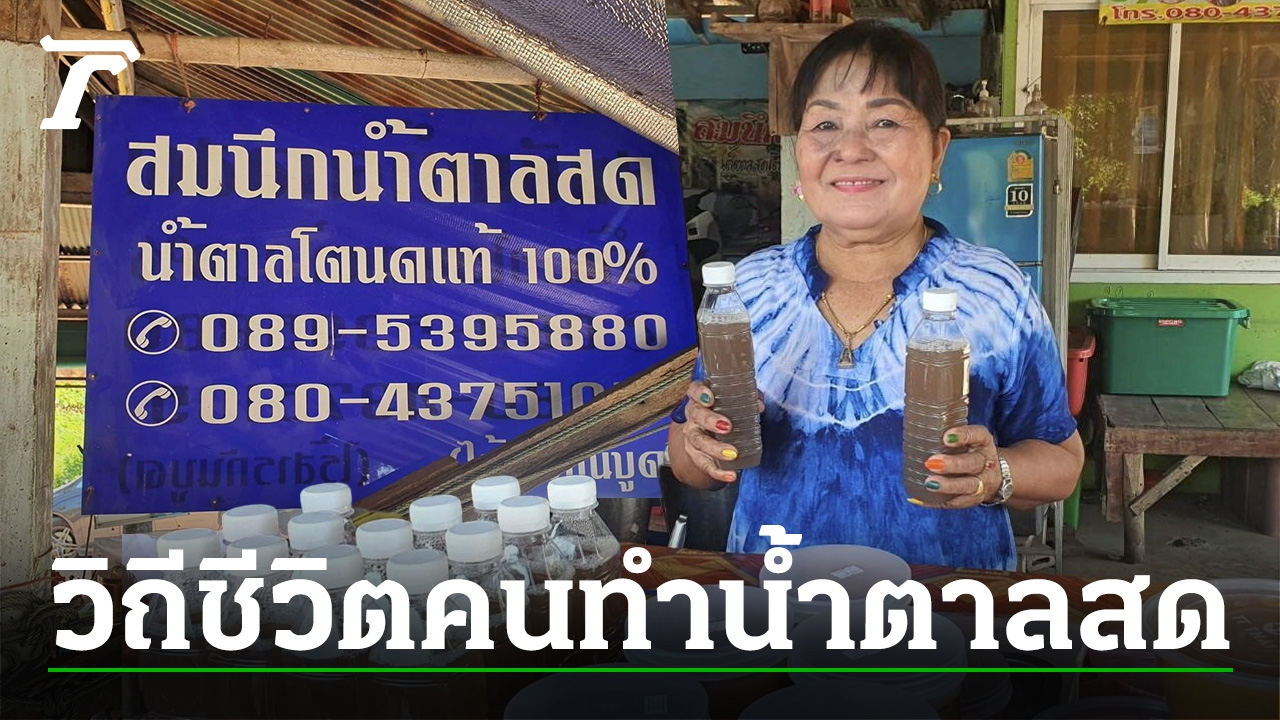 “นํ้าตาลสด” จาก “ต้นตาลโตนด” ของดีเด่นดังประจำ “หมู่บ้านน้ำตาลสด” บ้านปากน้ำ ตำบลปากน้ำ อำเภอบางคล้า จังหวัดฉะเชิงเทรา อีกหนึ่งภูมิปัญญาไทยที่สืบสานกันมาเก่าแก่ยาวนานตามฤดูกาลจะเริ่มหาทานได้ช่วงเดือนตุลาคม ผ่านไปเรื่อยๆพอถึงเดือนเมษายนผลผลิตจะเริ่มถดถอยมีน้อยลงไป เหตุเรียกหมู่บ้านน้ำตาลสดเพราะที่นี่ทำน้ำตาลกันมากเฉพาะที่บ้าน “ป้าสมนึก” สมนึก โลหะเจริญ อายุ 64 ปี หน้าร้านอยู่ที่ถนนท่าลานบนก็ผ่านมาแล้วถึงรุ่นที่ 3 พ่อแม่ทำกันมาทำนาด้วยทำตาลด้วยตอนเด็กๆก็ช่วยเขา เรียกว่าบ้านนี้ทำ “น้ำตาลสด” กันมานานกว่า 100 ปีแล้ว ทุกวันนี้รายได้จากน้ำตาลสดหล่อเลี้ยงหลายชีวิตในครอบครัวโลหะเจริญที่มีลูก 5 คน หลาน 11 คน เหลนอีก 7-8 คน แถบนี้ทำตาลกันทั้งสองฝั่งถนน เกิดมาเราก็เจอแล้ว แต่ก่อนมีปัญหาน้ำตาลเสียง่าย ก็ใช้ภูมิปัญญาใส่ไม้พะยอมในกระบอกตอนเก็บน้ำตาลสดจากงวงตาลช่วยกันบูด แต่ก็ช่วยได้แค่ 24 ชั่วโมงเท่านั้นที่สำคัญ “กระบอกเก็บน้ำตาล” ก่อนเอาขึ้นไปแขวนเก็บน้ำตาลก็จะเผาไฟฆ่าเชื้อเสียก่อน ถ้าเป็นกระบอกท่อพลาสติกก็จะเอาไปลวกในน้ำเดือดเมื่อเก็บกระบอกน้ำตาลลงมาจากต้นแล้วก็เทกรองเอากากไม้พะยอมออกเสียก่อน ใส่กระทะเคี่ยวไฟ ต้ม...มีฟองก็ช้อนทิ้ง เคี่ยวไปราวครึ่งชั่วโมงจนได้ที่เดือดสักพัก เคี่ยวเพิ่มความหวานอีกนิดหน่อย...ก็ตักเอามาพักให้พออุ่นๆแล้วก็บรรจุใส่ถุงเตรียมขายให้ลูกค้าน้ำตาลสดป้าสมนึกทำสดใหม่ไม่ได้ใส่สารกันบูด...ซื้อกลับบ้านถ้าแช่ถังโฟมไม่ดี น้ำแข็งไม่ถึงอาจจะเสียได้ ทางที่ดีสั่งล่วงหน้าให้ร้านแช่แข็งเอาไว้ แล้วพอมารับกลับบ้านความเย็นสูญเสียไม่มากอุ่นใจได้มากกว่า...ไม่เสี่ยง “น้ำตาลสด” จะบูดจะเสียได้ง่ายๆ ถึงบ้านก็เอาเข้าตู้เย็นเก็บไว้ได้ราว 7 วันเคล็ดการต้มน้ำตาลสดเป็นสิ่งสำคัญ ต้องรู้ว่าน้ำตาลสดใหม่ๆจากต้น รสจะไม่หวานมาก การต้มให้งวดขึ้นโดยใช้เวลาอย่างพอดิบพอดีจะช่วยเพิ่มรสหวานกลมกล่อมชวนกินให้โดดเด่นยิ่งขึ้นให้รู้ต่อไปอีกนิด...หากจะเคี่ยวน้ำตาลเป็นน้ำตาลก้อน น้ำตาลปึก เมื่อได้เป็นน้ำตาลสดแล้วก็ให้เคี่ยวต่อไปอีกประมาณ 3 ชั่วโมงก็จะได้ เป็นกระบวนการที่ต้องใช้เวลานาน...เสียเวลามากกว่าปัจจุบันไม่ค่อยมีบ้านไหนเคี่ยวน้ำตาลปึกกันแล้วเพราะแค่ต้มน้ำตาลสดขายก็ไม่พออยู่แล้ว น้ำตาลสดขายดีกว่า ลูกค้านิยมทานกันมากกว่า แม่ค้าก็ชอบเพราะเสียเวลา เสียแรงน้อยกว่าค่ะ “แต่ละวัน...แม้กระทั่งวันธรรมดา ลูกค้าก็โทร.มาสั่งกันเยอะ ขาจรก็ไม่ใช่น้อยๆ เรียกว่าต้มเสร็จออกวางหน้าร้านไ