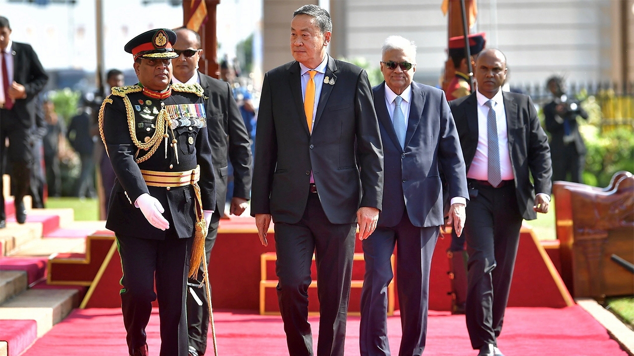 นายเศรษฐา ทวีสิน นายกรัฐมนตรีและ รมว.คลัง ขณะเข้าร่วมพิธีต้อนรับอย่างเป็นทางการในโอกาสเดินทางไปเยือนสาธารณรัฐสังคมนิยมประชาธิปไตย ศรีลังกา โดยมีนายรานิล วิกรมสิงเห ประธานาธิบดีศรีลังกา ให้การต้อนรับ ก่อนหารือทวิภาคี และร่วมเป็นสักขีพยานในพิธีลงนามข้อตกลงระหว่างกันรวม 3 ฉบับ.