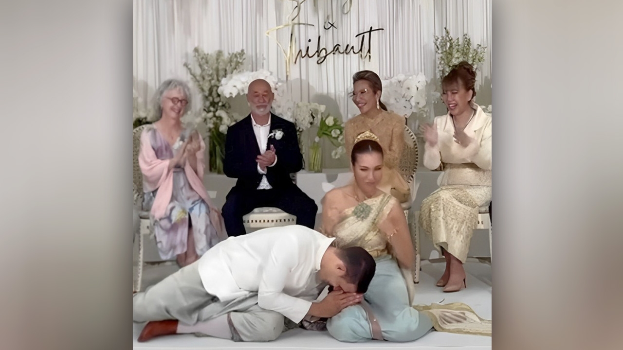 ท่านผู้อ่านโปรดแซ่บ!! เฮลั่นโรงแรมโอเรียนเต็ลไปเลยสิคะ..คุณขา เมื่อเจ้าบ่าวชาวปารีเซียง “ทีโบ การ์ เซีย” สวมแหวนแต่งงานให้ปุ๊บ ทายาทกันตนา “สตางค์-ดิษย์ลดา” ก็พเยิดหน้าจิกตาไปที่ตักตัวเอง ทันใดนั้นเจ้าบ่าวก็ก้มกราบอย่างเคารพ เอ๊ย! อย่างนอบน้อมแสนละมุนชวนใจฟูยิ่งนักรักเมีย กราบเมีย อนาคต “เขยฝรั่ง” สดใสแน่นวล--บราโว!! คิกๆ."คุณหลี"“สตางค์-ดิษย์ลดา ดิษยนันทน์ & ทีโบ การ์เซีย”