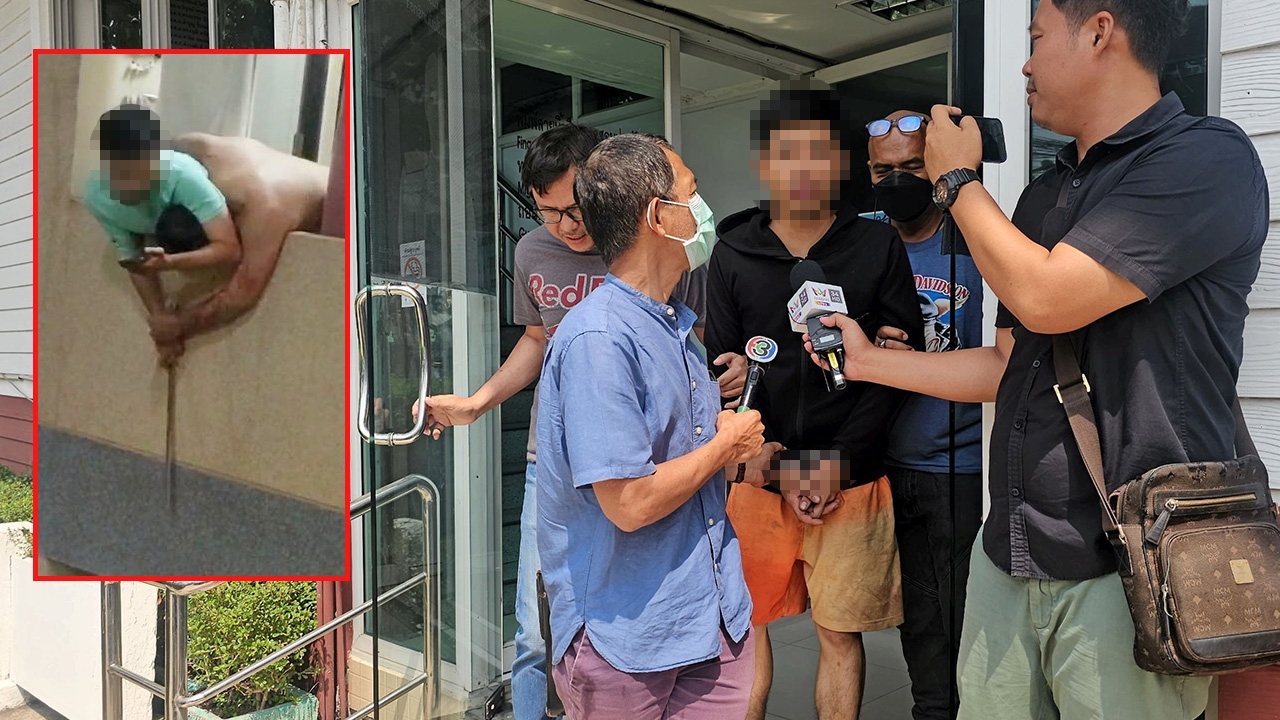 ตำรวจสืบสวน สน.คลองตัน คุมตัวนายวิศณุศักดิ์ ลำดวน (สวมกุญแจมือ) มาสอบสวนหลังเมาน้ำกระท่อมและกัญชาจนหูแว่วมีคนตามฆ่า ก่อเหตุใช้มีดดาบล็อกคอนายพงษ์บดินทร์ ลำดวน ผู้เป็นพ่อ (ภาพเล็ก) มีการยื้อยุดแย่งมีด ก่อนผลักดันกันจนนายพงษ์บดินทร์ตกจากระเบียงชั้น 3 บาดเจ็บ.อ่าน “คอลัมน์หนังสือพิมพ์ไทยรัฐ” ทั้งหมดที่นี่