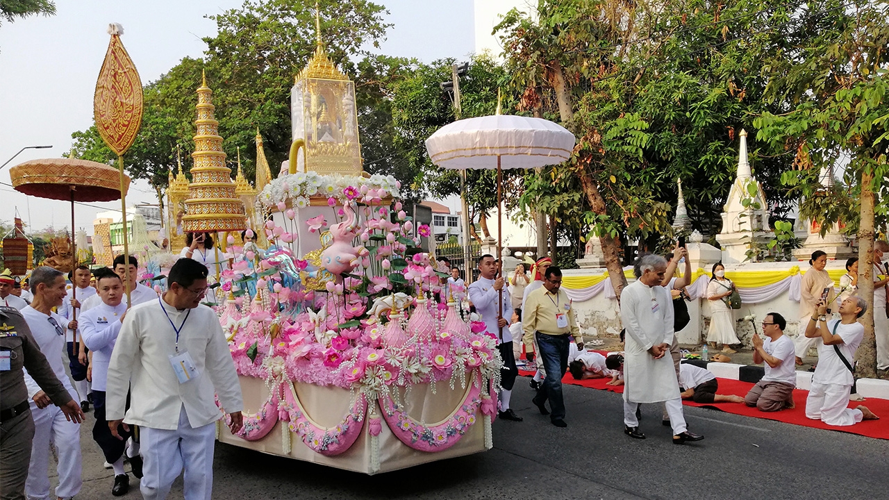 หลังจากที่กรมการศาสนา กระทรวงวัฒนธรรม (วธ.) อัญเชิญพระบรมสารีริกธาตุ และพระอรหันตธาตุของพระสารีบุตร และพระโมคคัลลานะ จาก จ.เชียงใหม่ มาถึง จ.อุบลราชธานี และประดิษฐาน ณ ห้องมั่นคง วัดมหาวนาราม พระอารามหลวง อ.เมืองอุบลราชธานี เมื่อช่วงสายวันที่ 9 มี.ค.ที่ผ่านมา ต่อมาเมื่อเวลา 07.00 น. วันที่ 10 มี.ค. ที่หน้าศาลหลักเมืองอุบลราชธานี ทางจังหวัดอุบลราชธานีได้จัดขบวนแห่ “ธรรมยาตราจากมหานทีคงคาสู่ลุ่มน้ำโขง” อัญเชิญพระบรมสารีริกธาตุ และพระอรหันตธาตุของพระสารีบุตรและพระโมคคัลลานะ เคลื่อนขบวนนำไปประดิษฐานที่วิหารพระเจ้าใหญ่อินทร์แปลง วัดมหาวนาราม ก่อนเปิดให้ประชาชนเข้าสักการะสำหรับริ้วขบวนในครั้งนี้จัดอย่างยิ่งใหญ่ตระการตา ประกอบด้วยขบวนธงชาติไทย ธงชาติสาธารณรัฐอินเดีย ธงธรรมจักร ขบวนฉัพพรรณรังสี ขบวนโคมประทีปและโคมดอกบัว ขบวนรถบุษบกประดิษฐานพระบรมสารีริกธาตุ และพระอรหันตธาตุฯ ขบวนเฉลิมพระเกียรติฯ ขบวนต้นเทียนพรรษา “อุบลฮุ่งเฮืองเมืองธรรม งามล้ำเทียนพรรษา” ขบวนธงอีสานอุบลราชธานี “พุทธศิลป์แห่งศรัทธา” ขบวน “งามภูษาผ้ากาบบัวอุบล” ขบวน “เสน่ห์น่ายลพุทธศาสนิกชน 4 ภูมิภาค ขบวน “เสน่ห์ประจำชาติอินเดีย” ขบวน “หลอมรวมเครือข่ายถวายเป็นพุทธบูชา” และขบวน “พลังศรัทธาพุทธศาสนิกชน” ผู้เข้าร่วมขบวนกว่า 2,500 คน และตลอด 2 ข้างทาง ระยะทางกว่า 1 กิโลเมตร ประชาชนต่างถือดอกไม้ พานดอกไม้ ธูปเทียน กราบสักการะ เปล่งเสียงสาธุ สาธุตลอดทั้งเส้นทาง จนถึงภายใน วัดมหาวนารามจากนั้นนายเสริมศักดิ์ พงษ์พานิช รัฐมนตรีว่าการกระทรวงวัฒนธรรม พร้อมด้วย นายเกรียง กัลป์ตินันท์ รัฐมนตรีช่วยว่าการกระทรวงมหาดไทย นายศุภศิษย์ กอเจริญยศ ผู้ว่าราชการจังหวัดอุบลราชธานี ได้อัญเชิญพระบรมสารีริกธาตุและพระอรหันตธาตุของพระสารีบุตรและพระโมคคัลลานะ จากรถบุษบกเข้าสู่มณฑปที่ประดิษฐานภายในพระวิหารพระเจ้าใหญ่อินแปลง วัดมหาวนาราม ลำดับต่อมาสมเด็จพระมหาธีราจารย์ กรรมการมหาเถรสมาคม เจ้าอาวาสวัดพระเชตุพนวิมล มังคลาราม ประธานสำนักงานกำกับดูแลพระธรรมทูตไปต่างประเทศ เป็นประธานฝ่ายบรรพชิต ประกอบพิธีสงฆ์ พร้อมนำเวียนเทียนรอบพระวิหาร 3 รอบ ก่อนเปิดให้พุทธศาสนิกชนและประชาชนทั่วไปทั้งในจังหวัดอุบลราชธานี และในพื้นที่ภาคตะวันออกเฉียงเหนือ รวมทั้งประเทศเพื่อนบ้านได้ร่วมสักการะเพื่อความเป็นสิริมงคลแก่ชีวิต ระหว่างวันที่ 10-13 มี.ค.2567 เวลา 07.00-20.00 น.นอกจากนี้ นายเสริมศักดิ์ พงษ์พานิช รมว.วธ. และคณะ ได้ทำพิธีเปิดนิทรรศการอัญเชิญพระบรมสารีริกธาตุและพร