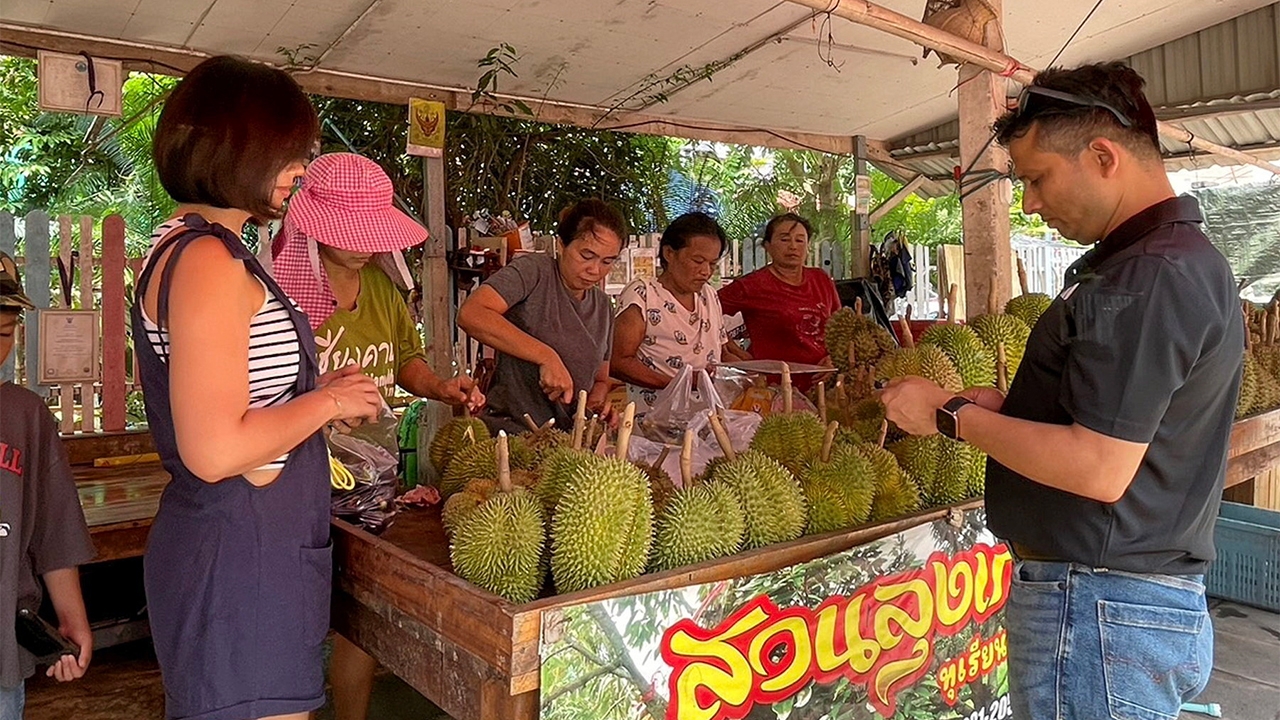 ช่วงปลายเดือนเมษายน-มิถุนายน ของทุกปีผลไม้ปราจีนบุรี จะเริ่มออกผลผลิตสู่ท้องตลาด โดยเฉพาะทุเรียน โดยรุ่นแรกเริ่มวางจำหน่ายแล้ว ไม่ว่าจะเป็นหมอนทอง ก้านยาว กบชายน้ำ นกกระจิบ ชะนี เป็นต้นที่สวนทุเรียน “สวนลุงเกษม” ปลูกทุเรียนบนเนื้อที่ 28 ไร่ จำนวน 500 ต้น เป็นทุเรียน GI หรือ Geographical Indication หมายถึง สิ่งบ่งชี้ทางภูมิศาสตร์ คือเครื่องหมายที่ได้รับจากการขึ้นทะเบียนกับกรมทรัพย์สินทางปัญญา ใช้กับสินค้าที่มาจากแหล่งผลิตที่เฉพาะเจาะจง ซึ่งคุณภาพหรือชื่อเสียงของสินค้านั้นๆ เป็นผลมาจากการผลิตในพื้นที่ดังกล่าว GI จึงเปรียบเสมือนเป็นแบรนด์ของท้องถิ่นที่บ่งบอกถึงคุณภาพและแหล่งที่มาของสินค้าทุเรียนที่ปราจีนเป็นสวน GI ประกอบด้วย ทุเรียนพันธุ์ก้านยาว พันธุ์หมอนทอง พันธุ์ชะนี พันธุ์กระดุมทอง และพันธุ์พื้นเมืองอื่นๆ ที่มีเนื้อแห้งหนา เส้นใยน้อย หวานมัน ปลูกมากในเขตพื้นที่ อ.เมืองปราจีนบุรี อ.กบินทร์บุรี อ.ประจันตคาม อ.ศรีมหาโพธิ์ และ อ.นาดีด้วยสภาพภูมิอากาศ ปริมาณน้ำฝน และเนื้อดิน ทำให้ทุเรียนปราจีนมีเอกลักษณ์พิเศษคือ เนื้อแห้งเพื่อให้ผู้ที่ต้องการทุเรียนปราจีนบุรีแท้ไปแวะหาซื้อได้สะดวก ทางสวนลุงเกษมจึงได้นำผลผลิตที่ปลูกเองไปตั้งร้านขายทุเรียนที่บริเวณข้างถนนสายสุวินทวงศ์ อยู่ระหว่างสี่แยกหนองชะอมไปยังศูนย์ราชการจังหวัดปราจีนบุรี ต.ไม้เค็ด อ.เมือง จ.ปราจีนบุรี ภายใต้ชื่อร้านว่าร้าน “สวนลุงเกษม”ปรากฏว่ามีลูกค้าเข้าคิวซื้อตลอดทั้งวัน ปีนี้ทุเรียนจะออกผลแค่ 2 รุ่น เนื่องจากสภาพภูมิอากาศร้อนและแห้งแล้ง หากผู้ที่ชื่นชอบทุเรียนปราจีนบุรี ต้องรีบหาซื้อรับประทาน หากช้าต้องรอถึงปีหน้าส่วนราคาทุเรียนในช่วงนี้ราคาจะสูง เนื่องจากอากาศร้อนจนทำให้ผลผลิตออกน้อย อาทิ หมอน ทอง กก.ละ 270 บาท กบชายน้ำ กก.ละ 300 บาท นกกระจิบ กก.ละ 200 บาท ชะนี กก.ละ 180 บาท ก้านยาว กก.ละ 350 บาทน.ส.กุสุมา ใจศรี หรือ อ๊อฟ อายุ 32 ปี กล่าวว่า ตอนนี้มีหมอนทองที่ออกผล และชะนี สนใจซื้อได้โดยตั้ง GPS มาที่ร้านผลไม้ลุงเกษม ที่ลูกค้านิยมรับประทาน ก็จะเป็นหมอนทอง รสชาติหวานมัน เม็ดลีบ เนื้อเยอะ ส่วนชะนีก็จะเป็นชะนีไข่ปราจีนบุรี เม็ดลีบ เนื้อเหนียว ผิวเหลือง หอมหวานมัน ราคาปีนี้ค่อนข้างสูง เพราะผลผลิตออกน้อย อากาศแล้ง และร้อนมาก ฝนไม่ค่อยตก ช่วงนี้เป็นทุเรียนรุ่นแรกที่ตัดออกมาขายหน้าร้านแล้ว สามารถโทร.สั่งซื้อสินค้าได้ที่เบอร์ 08-0697-4159 ได้ตลอดเวลา.วัชรพงศ์ สุภรณ์ไพจิต รายงานคลิกอ่านคอลัมน์ “มองทั่วทิศ” เพิ่มเติม