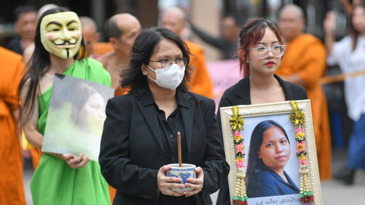 น.ส.ชญาภัส หรือโบ พี่สาวบุ้ง ถือกระถางธูปเชิญดวงวิญญาณ และใบปอ ทะลุวัง เพื่อนสนิท ถือภาพบุ้งเดินนำขบวนเคลื่อนศพ “บุ้ง ทะลุวัง” เวียนรอบเมรุ 3 รอบ ก่อนนำขึ้นเมรุวัดสุทธาโภชน์ ประกอบพิธีฌาปนกิจ ท่ามกลางมวลชนร่วมพิธีจำนวนมาก.อ่าน “คอลัมน์หนังสือพิมพ์ไทยรัฐ” ทั้งหมดที่นี่