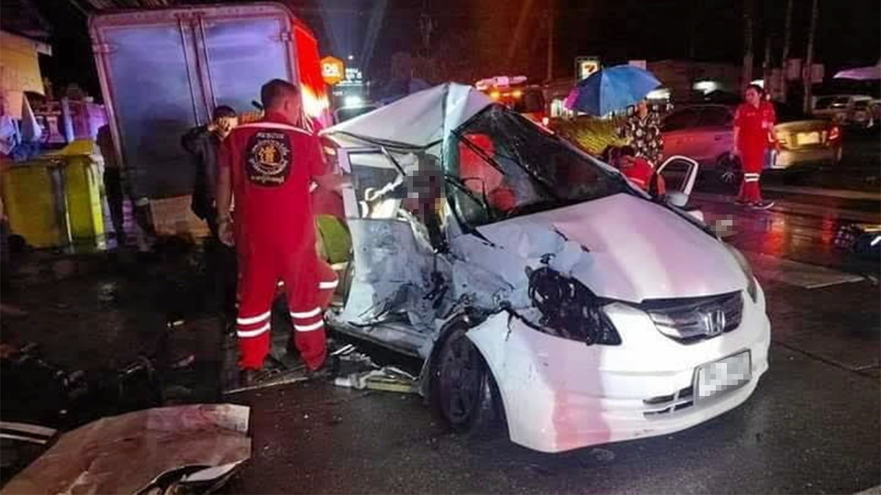 ล้อมคอกรถดัมพ์ ติดเสียงเตือน เหตุกระบะค้าง ชนสะพานลอย ถล่มดับ 1