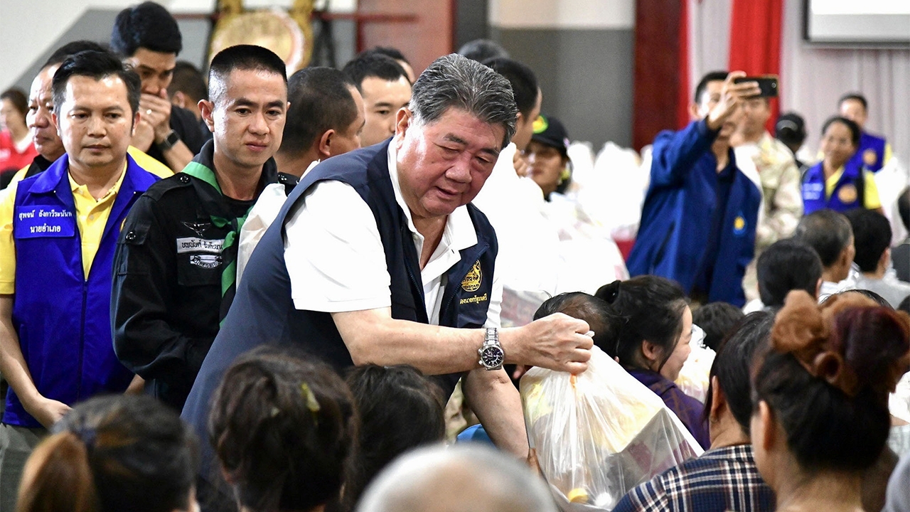 นายภูมิธรรม เวชยชัย รองนายกรัฐมนตรี ปฏิบัติหน้าที่นายกรัฐมนตรี นำสิ่งของเครื่องใช้ ไปมอบให้ชาวบ้าน ระหว่างนำคณะลงพื้นที่เยี่ยมให้กำลังใจผู้ประสบอุทกภัย บริเวณอาคารอเนกประสงค์ (โรงยิม) โรงเรียนเวียงแก่นพิทยาคม บ้านหล่ายงาว อ.เวียงแก่น จ.เชียงราย มั่นใจปีนี้ไม่ซ้ำรอยน้ำท่วมปี 54 ยันเขื่อนรับน้ำได้อีก ไม่ถึง กทม.แน่.อ่าน "คอลัมน์หนังสือพิมพ์ไทยรัฐ" ทั้งหมดที่นี่