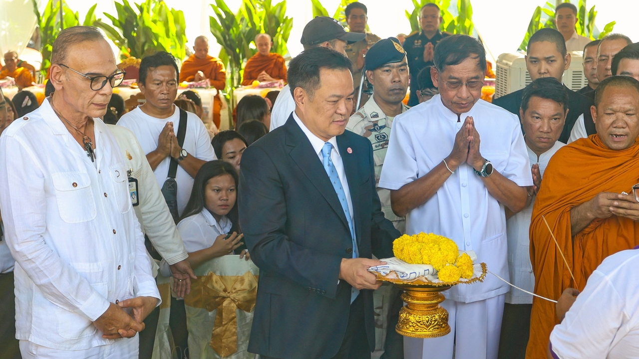 นายอนุทิน ชาญวีรกูล พล.ต.ท.คำรณวิทย์ ธูปกระจ่าง นายชาดา ไทยเศรษฐ์ และครอบครัวผู้สูญเสียร่วมพิธีทำบุญอุทิศส่วนกุศลให้แก่นักเรียนและครู 23 ศพ ที่ถนนวิภาวดีรังสิต ช่องทางด่วน จ.ปทุมธานี บรรยากาศเป็นไปอย่างโศกเศร้า.