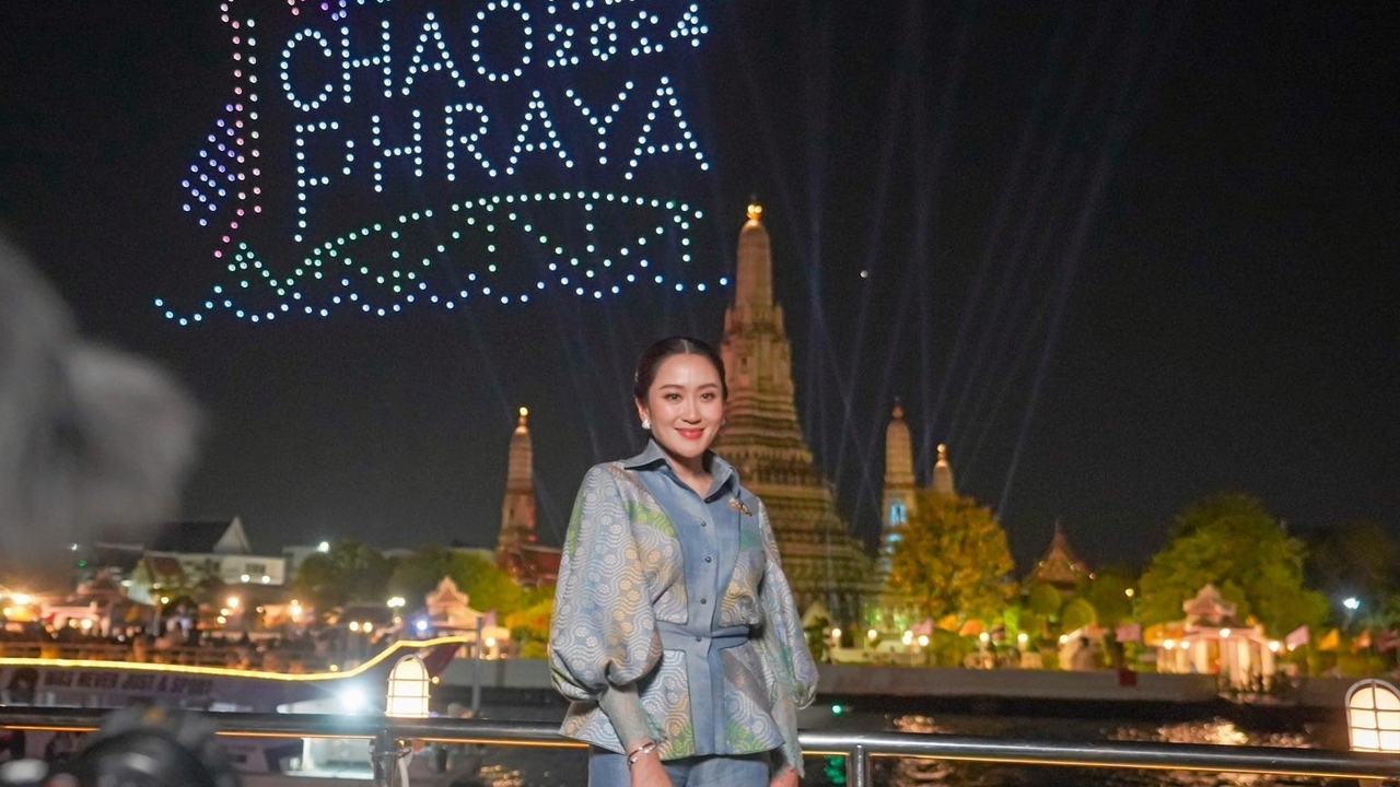 น.ส.แพทองธาร ชินวัตร นายกฯ ยืนถ่ายภาพบนดาดฟ้าเรือ ขณะล่องเรือชมการแสดงแสงสีเสียงวิจิตรเจ้าพระยา ชุดอรุณรุ่งสู่ราตรีผ่านวัดอรุณราชวรารามราชวรมหาวิหาร ภายหลังเป็นประธานเปิดงานวิจิตรเจ้าพระยา Vijit Chao Phraya 2024 ส่งเสริมการท่องเที่ยว โดยมีคู่สมรสและ ครม.เข้าร่วมด้วย.
