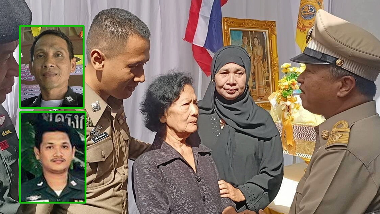 นายรัฐศาสตร์ ชิดชู ผวจ.พัทลุง เชิญตะกร้าสิ่งของพระราชทาน พระบาทสมเด็จพระเจ้าอยู่หัว และพระราชินี มอบแก่ครอบครัว พ.ต.ท.สุวิทย์ ช่วยเทวฤทธิ์ ครูใหญ่ ร.ร.ตชด.บ้านตืองอฯ (บน) ด.ต.โดม ช่วยเทวฤทธิ์ บุตรชาย (ล่าง) 2 พ่อลูก ที่เสียชีวิตจากเหตุคนร้ายลอบวางระเบิดถล่มรถยนต์ในพื้นที่หมู่ 4ต.ศรีบรรพต อ.ศรีสาคร จ.นราธิวาส.