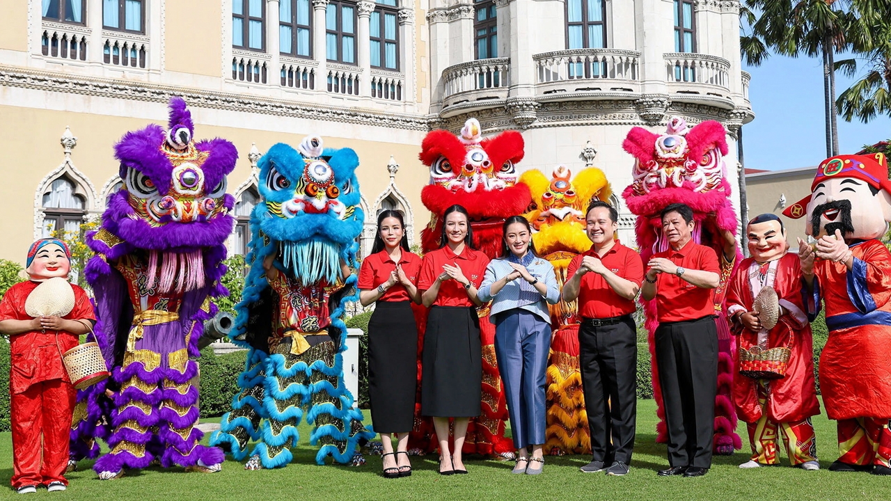 น.ส.แพทองธาร ชินวัตร นายกฯ ถ่ายรูปร่วมกับคณะสิงโตชมรมเชิดสิงโตมังกร 9 ไม้ ร.ร.ไตรมิตรวิทยาลัย กรุงเทพฯ ที่หน้าสนามหญ้า ตึกไทยคู่ฟ้า เพื่อเชิญชวนประชาชนเที่ยวงานตรุษจีนเยาวราช วันที่ 29-30 ม.ค.