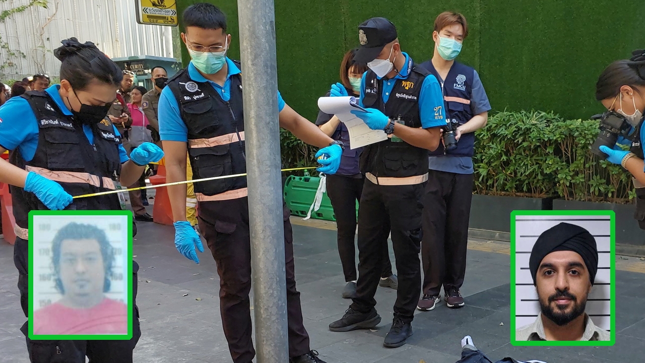 สภาพศพนายฤทธิศักดิ์ ประคุปตานนท์ (รูปเล็กซ้าย) หลังถูกนายเสรี เศรษฐีนามวงศ์ (รูปเล็กขวา) ลูกชายเจ้าของร้านขายผ้าย่าน สุขุมวิท ขับรถเก๋งไล่ชนจนร่างฟาดเสาเหล็กดับสยองที่หน้าโครงการก่อสร้าง เท็นท์อเวนิว ถนนสุขุมวิท เหตุเกิดจากนายเสรีขับเฉี่ยวชนแล้วยังลงมาทำร้ายจนผู้ตายต้องขี่รถ จยย.หนี แต่ยังถูกตามไล่ชนดับ.