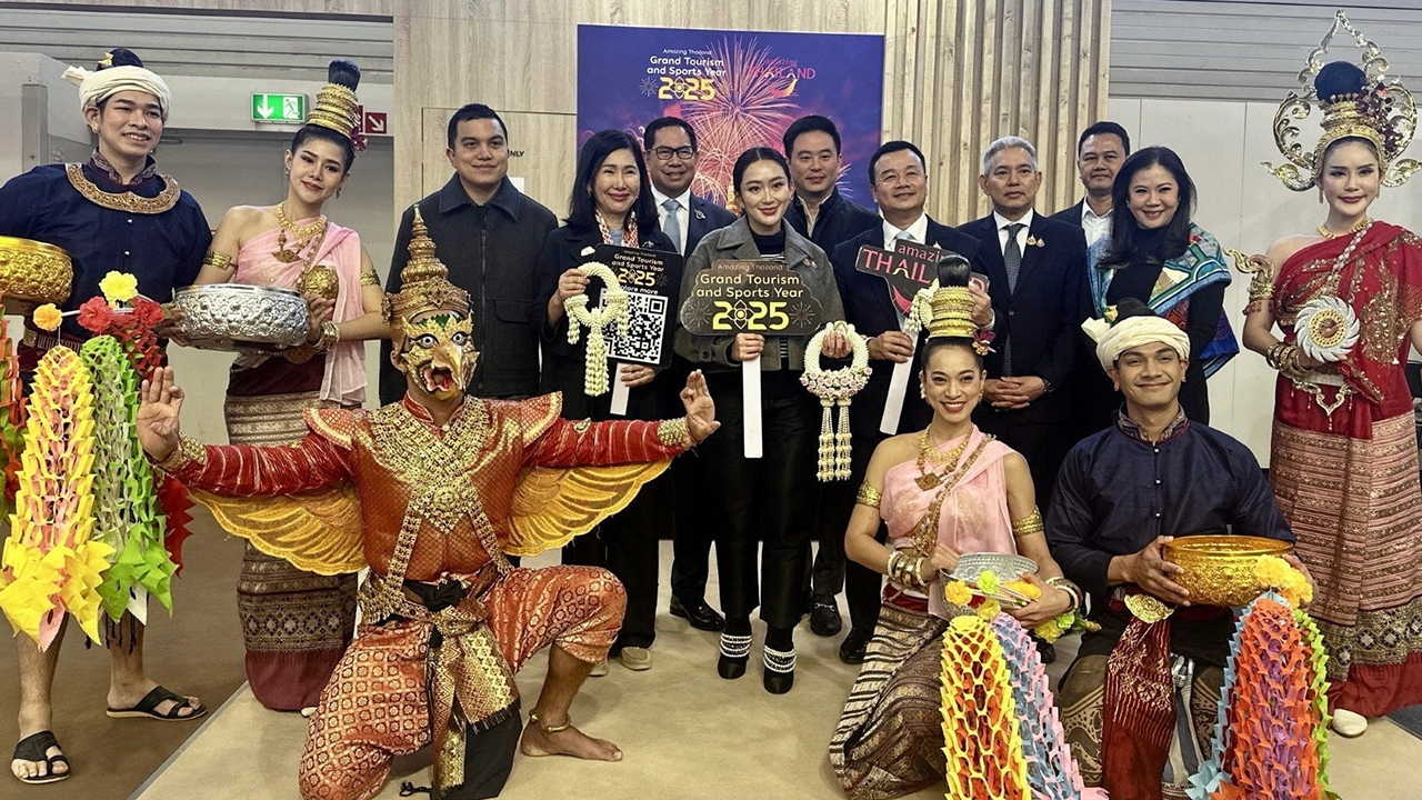 น.ส.แพทองธาร ชินวัตร นายกฯ ถ่ายรูปร่วมกับทีมโปรโมตท่องเที่ยวไทย ขณะเข้าเยี่ยมชมคูหาประเทศไทยในงานส่งเสริมการขายทาง การท่องเที่ยวระดับโลก ITB Berlin 2025 ที่ Berlin ExpoCenter City เป็นวันที่ 2 โดยนายกฯพบปะรับฟังความเห็นผู้ซื้อทั่วภูมิภาคยุโรปและร่วมเวิร์กช็อป Scents of Thai DIY ทำถุงเครื่องหอมไทย.