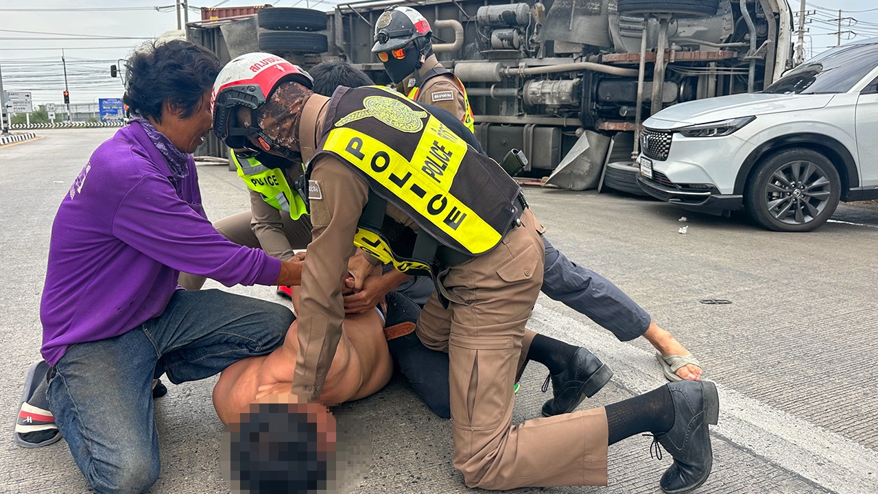 ตำรวจช่วยล็อกตัวนายภูผา เงาะสงคราม คนขับรถบรรทุก 6 ล้อไล่ชนรถชาวบ้านเสียหายไป 3 คัน ที่ถนนเทพรัตน อ.บางปะกง จ.ฉะเชิงเทรา จนรถบรรทุกพลิกตะแคงข้าง แล้วคลุ้มคลั่งถอดเสื้อยืนอยู่ที่ส่วนหัวรถบรรทุกพร้อมตะโกน “กูถ่ายหนัง เร่งเครื่องจะดริฟต์รถแต่หลุดโค้ง” ญาติแจ้งเป็นผู้ป่วยโรคประสาท คาดอาการกำเริบ.อ่าน "คอลัมน์หนังสือพิมพ์ไทยรัฐ" ทั้งหมดที่นี่