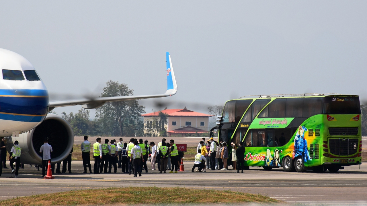 เจ้าหน้าที่หลายหน่วยร่วมตรวจ ความเรียบร้อยคนจีนที่ถูกส่งมาจากเมืองเมียวดี เมียนมา ด้วยรถบัสก่อนขึ้นเครื่องบินที่ทางการจีนนำมารับตัวกลับประเทศ ระลอกที่ 2 เป็นวันสุดท้าย ที่ท่าอากาศยานนานาชาติแม่สอด.