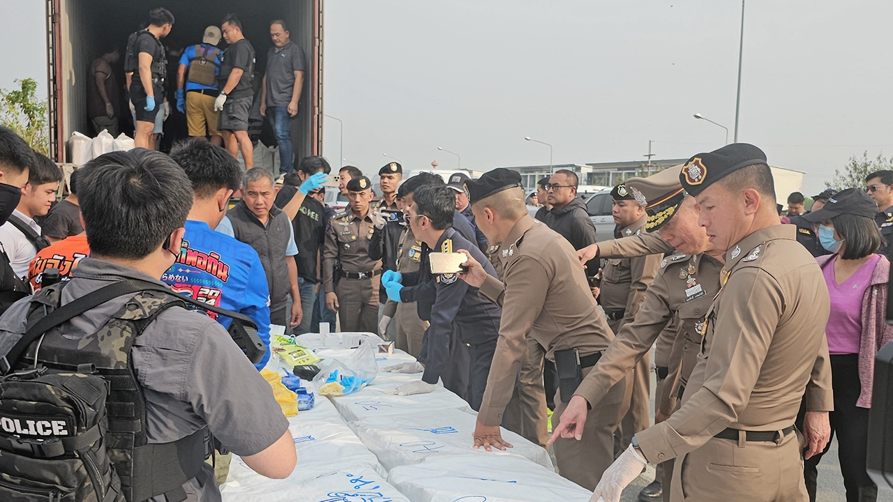 แก๊งยานรกเหิมเกริมหนัก ลอบขนยาเสพติดเย้ยกฎหมาย ฉวยโอกาสช่วงนายกฯ “อิ๊งค์” ยกคณะไปแถลงผลกวาดล้างใหญ่ที่จ.นครสวรรค์ ซุกยาบ้า 18.2 ล้านเม็ด ยาไอซ์750กก. และยาเคอีก 300 กก.ในรถพ่วงดัดแปลงกั้นตู้คอนเทนเนอร์อำพรางผ่านถนนเลี่ยงเมือง แต่ไม่รอดสายตา ตร.ปส. คุมตัวคนขับพร้อมเพื่อนสอบขยายผล ด้านทหารจับตาย 2 คนร้ายลอบขนยาบ้าข้ามแดนอ.แม่อาย จ.เชียงใหม่ 2.8 แสนเม็ด ส.อ.พลาดโดนสะเก็ดกระสุนบาดเจ็บในขณะที่ น.ส.แพทองธาร ชินวัตร นายกรัฐมนตรี ยกคณะไปแถลงผลการปฏิบัติการปราบปรามยาเสพติด บริเวณด่านตรวจยานพาหนะพยุหะคีรี ต.ย่านมัทรี อ.พยุหะคีรี จ.นครสวรรค์ ปรากฏว่าช่วงเวลาไล่เลี่ยกันแก๊งยานรกยังเหิมเกริมลอบขนยาเสพติดลอตใหญ่เย้ยกฎหมาย ถูกตำรวจสกัดจับได้กว่า 18 ล้านเม็ด โดยเมื่อเวลา 14.30 น. วันที่ 21 มี.ค. พล.ต.ต.นเรวิช สุคนธวิท ผบก.ภ.จ.นครสวรรค์ รับรายงานจากตำรวจปราบปรามยาเสพติดตรวจค้นรถพ่วงตู้คอนเทนเนอร์ต้องสงสัยบริเวณถนนเลี่ยงเมืองนครสวรรค์ สาย 112 หลัก กม.ที่ 6-7 ต.ตะเคียนเลื่อน อ.เมืองนครสวรรค์ภายในตู้คอนเทนเนอร์ดัดแปลงนำแผ่นเหล็กมาปิดกั้นทำเป็นห้องบรรทุกของแยกอีกชั้น เมื่อเจ้าหน้าที่งัดแผ่นเหล็กออก พบกระสอบสีขาว มีตัวอักษรว่า “แดงอาจารย์ใหม่” บางถุงเขียนตัวอักษร “K” บางถุงเขียนคำว่า “ส้ม” ตรวจสอบภายในกระสอบ พบยาบ้าจำนวน 19 กระสอบ รวม 18,200,000 เม็ด ยาไอซ์จำนวน 30 กระสอบ น้ำหนัก 750 กก. และยาเคตามีน 12 กระสอบ รวมน้ำหนัก 300 กก. คุมตัว คนขับพร้อมเพื่อนที่นั่งมาด้วยอีก 1 คนมาสอบสวนหลังจับกุม พล.ต.ต.นเรวิช สุคนธวิท ผบก.ภ.จ.นครสวรรค์ พร้อมด้วย พ.ต.อ.เสฎฐวุฒิ รอดจันทร์ ผกก.เมืองนครสวรรค์ เดินทางตรวจสอบยาเสพติดของกลาง รวมถึงร่วมสอบปากคำผู้ต้องหาทั้งสองคน เบื้องต้นทั้งคู่ให้การรับสารภาพว่ารับจ้างขนยาเสพติดมาจากทางภาคเหนือเพื่อไปส่งเข้าโกดังแห่งหนึ่งในพื้นที่ภาคกลาง จากนั้นมีรถมารับต่ออีกทอดหนึ่ง หลังสอบปากคำตำรวจคุมตัวผู้ต้องหาไปสอบขยายผลที่ บช.ปส.ด้านสถานการณ์การลักลอบขนยาเสพติดภาคเหนือยังทะลักข้ามชายแดนอย่างต่อเนื่อง ล่าสุดทหารกองกำลังผาเมืองปะทะจับตายคนร้าย 2 ศพ โดยช่วงเช้าวันที่ 21 มี.ค. พล.ต.กิดากร จันทรา ผู้บัญชาการกองกำลังผาเมือง สั่งการให้ พ.อ.มีชัย นิลศาสตร์ รองผู้บัญชาการกองกำลังผาเมืองร่วมกับทหารพรานกองทัพภาคที่ 3 เจ้าหน้าที่กองร้อยตำรวจตระเวนชายแดนที่ 334 หน่วยบัญชาการสกัดกั้นและปราบปรามยาเสพติดสารตั้งต้นและเคมีภัณฑ์ชายแดนภาคเหนือ กองร้อยอาสารักษาดินแดนอำเภอแม่อาย จ.เชียงใหม่ ตำรวจ สภ.แม่อาย แพทย์และอัยการร่วมกันตรวจสอบเหตุวิสา
