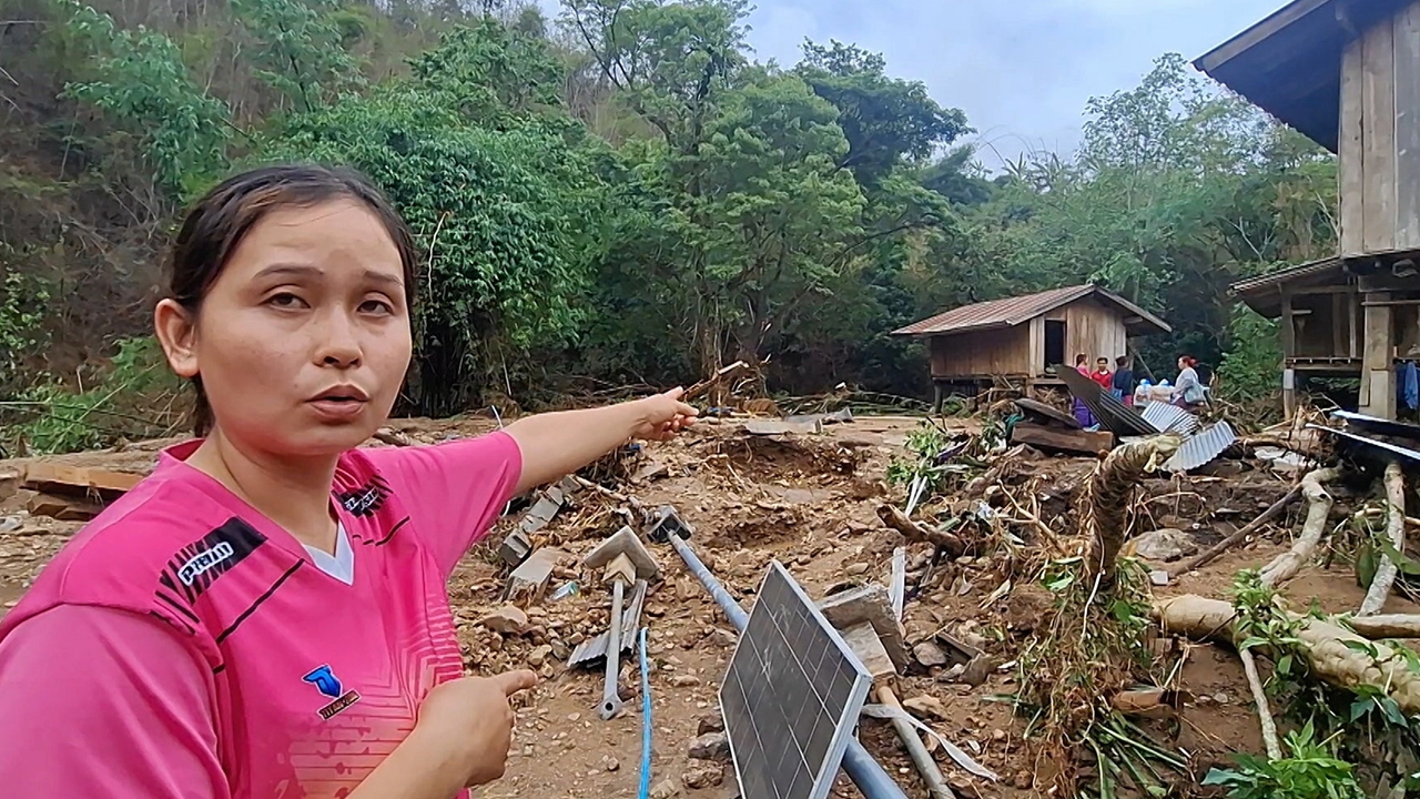 ชาวบ้านชี้ให้ดูความเสียหายหลังน้ำป่าซัดถล่มกลางดึก กวาดบ้านเรือนพัง 6 หลัง ที่บ้านห้วยฮ่อมนอก หมู่ 4 ต.ทาแม่ลอบ อ.แม่ทา จ.ลำพูน กลืนร่าง น.ส.หวาน โค๊ะก๋า และนายยุทธิชัย โค๊ะก๋า 2 พี่น้องเสียชีวิต.อ่าน "คอลัมน์หนังสือพิมพ์ไทยรัฐ" ทั้งหมดที่นี่