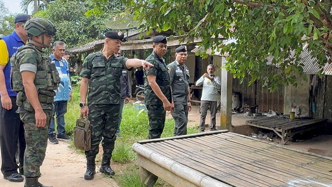 พล.ท.ไพศาล หนูสังข์ แม่ทัพภาคที่ 4 นำเจ้าหน้าที่ตรวจจุดเกิดเหตุโจรใต้กราดยิงถล่มบ้านชาวไทยพุทธ ที่บ้านปลักปลา ต.โฆษิต อ.ตากใบ จ.นราธิวาส ทำให้นายแดง ตุนาสุข ด.ญ.สสิตา จันทร์คง และนายดำ จันทร์คง เสียชีวิต 3 ศพ.