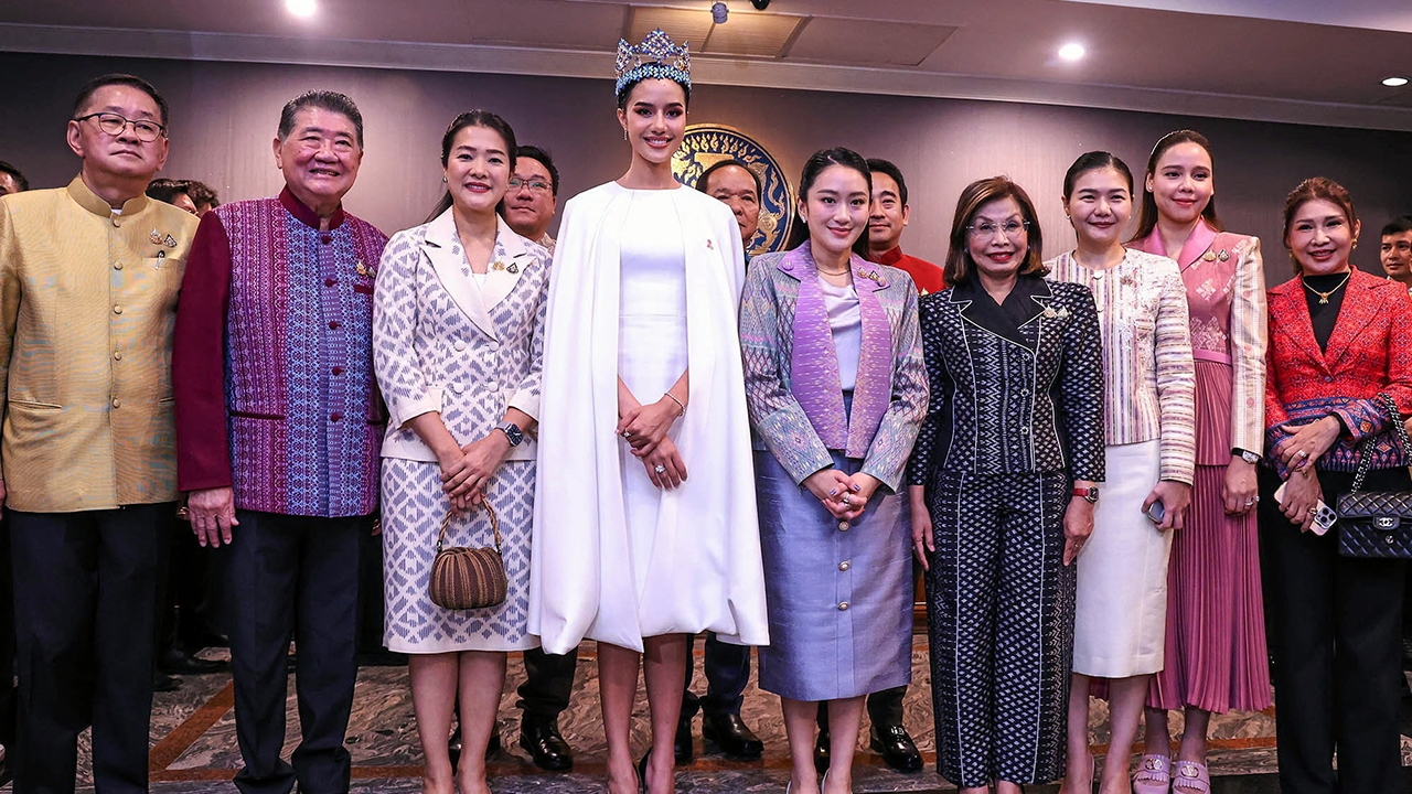 น.ส.แพทองธาร ชินวัตร นายกรัฐมนตรี ถ่ายรูปกับ น.ส.สุชาตา ช่วงศรี หรือโอปอล Miss World 2025 พร้อมคณะ หลังเข้าเยี่ยม คารวะ ที่โถงกลาง ตึกบัญชาการ 1 โดยโอปอลได้เชิญชวนนายกฯและรัฐบาลร่วมจัดทำโครงการรณรงค์ป้องกันมะเร็งเต้านมที่ทำอยู่ เพื่อให้เข้าถึงประชาชนมากขึ้น พร้อมชื่นชม และให้กำลังใจนายกฯในการทำงาน.