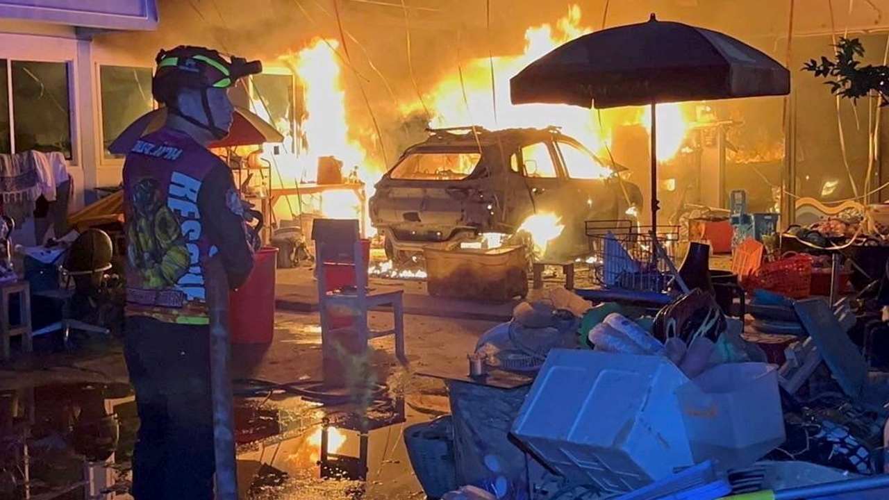 เคราะห์ซ้ำกรรมซัดผู้ประสบภัยน้ำท่วม จ.น่าน รถเก๋งไฟฟ้าจอดแช่น้ำนานกว่า 2 วัน หลังน้ำลดจู่ๆเกิดระเบิดไฟลุกท่วมวอดทั้งคันหวิดลามไหม้บ้าน เจ้าของโอดยังไม่ทันเก็บกวาดบ้านก็มาไฟไหม้รถอีก คาดสาเหตุจากน้ำท่วมระบบไฟฟ้าในตัวรถเสียหายจนเกิดลัดวงจร ส่วนสถานการณ์น้ำท่วมสุโขทัยยังไม่คลายวิกฤติ ลามขยายวงกว้างจมไปอีกหลายหมู่บ้าน แม่ฮ่องสอนดินสไลด์หินถล่มขวางถนนระหว่างหมู่บ้าน เฝ้าจับตาระดับน้ำสาละวินเพิ่มสูง ด้านลุ่มน้ำโขงยังทรงตัวระดมเครื่องสูบน้ำ กระสอบทรายป้องกันพื้นที่เศรษฐกิจการค้าตัวเมือง อุตุฯเตือนเตรียมรับมือฝนถล่มหนักอีกระลอก 5-6 ส.ค.นี้สถานการณ์น้ำท่วมหลายพื้นที่ยังไม่คลี่คลาย ถึงแม้ว่าปริมาณฝนจะลดลงบ้างแล้ว เมื่อวันที่ 1 ส.ค. ที่ จ.น่าน หลังจากระดับน้ำลดลงจนเข้าสู่ภาวะปกติเข้าสู่โหมดฟื้นฟูเก็บกวาดทำความสะอาดบ้านเรือน มีชาวบ้านผู้ประสบภัยเผชิญเคราะห์ซ้ำกรรมซัด เกิดเหตุไฟไหม้รถยนต์ระบบไฟฟ้าจนเกือบจะลามไปไหม้บ้าน เมื่อเวลา 00.45 น. วันที่ 1 ส.ค. ร.ต.อ.ชวลิต เทรักสี รอง สว. (สอบสวน) สภ.เมืองน่าน ประสานรถดับเพลิงไประงับเหตุไฟไหม้รถเก๋งที่จอดอยู่บริเวณบ้านเลขที่ 185 บ้านเจดีย์ หมู่ 15 ต.ดู่ใต้ เป็นพื้นที่ที่เพิ่งผ่านพ้นวิกฤติน้ำท่วมใหญ่ไม่กี่วันก่อน พบเพลิงลุกไหม้รถเก๋งระบบไฟฟ้าคันหนึ่งที่จอดอยู่ในโรงจอดรถหน้าบ้านที่เปิดเป็นร้านขายของชำ เปลวไฟพวยพุ่งอย่างรุนแรงลามไปถึงฝาผนังบ้าน เจ้าหน้าที่ระดมฉีดน้ำสกัดจนเพลิงสงบ แต่เผาผลาญรถวอดทั้งคัน ยังโชคดีไม่ลามไปไหม้บ้านนางพวงผกา สีรัง เจ้าของบ้าน เผยทั้งน้ำตาว่า ที่บ้านเพิ่งผ่านเหตุการณ์น้ำท่วมมาได้ไม่กี่วัน รถคันนี้จอดแช่น้ำที่ท่วมขังนานกว่า 2 วัน ยังไม่ทันได้ซ่อมหรือขยับอะไร กระทั่งช่วงกลางดึกได้ยินเสียงระเบิดดังสนั่นจากโรงจอดรถ ก่อนเปลวไฟจะลุกพึ่บท่วมรถทั้งคัน “บ้านก็เพิ่งน้ำลดยังไม่ได้เก็บกวาดให้เรียบร้อย รถก็มาไฟไหม้อีก ไม่เหลืออะไรแล้ว” เจ้าของบ้านโอดครวญ เบื้องต้นตำรวจคาดว่าสาเหตุเกิดจากระบบไฟฟ้าภายในตัวรถที่ได้รับความเสียหายจากน้ำท่วมจนเกิดลัดวงจร มีประกายไฟและระเบิดขึ้น อย่างไรก็ตาม จะต้องตรวจสอบอย่างละเอียดอีกครั้งจ.สุโขทัย น้ำท่วมยังวิกฤติหนักที่ อ.ศรีสำโรง หลังจากคันดินกั้นแม่น้ำยมถูกกัดเซาะขาดเป็นทางยาวกว่า 60 เมตร กระแสน้ำไหลบ่าเข้าท่วมบ้านเรือนและพื้นที่การเกษตรหมู่ 1 ถึงหมู่ 6 ต.บ้านนา ระดับน้ำสูง 1-2 เมตร ชาวบ้านได้รับความเดือดร้อน 586 ครัวเรือน ล่าสุดมวลน้ำขยายวงกว้างลามเข้าท่วมพื้นที่หมู่ 3, 4, 5 และหมู่ 7 ต.ว