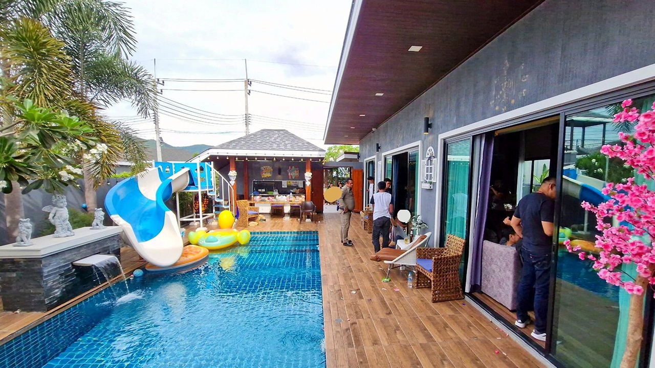 สืบภาค 7 นำทีมบุกทลายปาร์ตี้ยานรกคาพูลวิลล่าชะอำ จ.เพชรบุรี รวบผู้ต้องหาได้ 52 คน ยึดของกลางยาอี ยาบ้า และบุหรี่ไฟฟ้าเพียบ ตำรวจตามแกะรอยนักค้ายา จ.ราชบุรี นัดแนะกลุ่มเพื่อนไปเปิดเช่าบ้านไม่กี่คนคล้อยหลังพาพวกกว่าครึ่งร้อยไปมั่วสุมดื่มเหล้า พี้ยาควันโขมง ประสานท้องที่และฝ่ายปกครองปิดล้อมตะครุบได้ยกแก๊งตำรวจบุกจับปาร์ตี้ยานรกคาพูลวิลล่าได้ผู้ต้องหากว่าครึ่งร้อย ยึดของกลางยาเค ยาอี ยาบ้า และบุหรี่ไฟฟ้าเพียบ เปิดเผยเมื่อวันที่ 27 ส.ค. พ.ต.อ.อภิรักษ์ เพิ่มชัย ผกก.สภ.ชะอำ จ.เพชรบุรี ร่วมกับพนักงานสอบสวนสอบปากคำกลุ่มผู้ต้องหาชายหญิงอายุระหว่าง 16-28 ปี รวม 52 คน หลังถูกตำรวจ สภ.ชะอำร่วมกับชุดสืบสวนภาค 7 และฝ่ายปกครองอำเภอชะอำบุกจับกุมขณะมั่วสุมจัดปาร์ตี้เสพยาเสพติดภายในพูลวิลล่าแห่งหนึ่งใน อ.ชะอำสืบเนื่องจากช่วงเย็นวันที่ 26 ส.ค.ที่ผ่านมา พ.ต.อ.อภิรักษ์ เพิ่มชัย ผกก.สภ.ชะอำ พร้อมด้วย พ.ต.ท.ทศพร รุ่งเรืองศุภรัตน์ รอง ผกก.สส.บก.สส.ภ.7 นายธเนศ นาเมือง ปลัดป้องกันอำเภอชะอำ นำกำลังปิดล้อมตรวจค้นพูลวิลล่าดังกล่าว หลังสืบทราบว่ามีวัยรุ่นนักเที่ยวมั่วสุมเสพยา สร้างความเดือดร้อนรำคาญให้ชาวบ้านข้างเคียง เมื่อไปถึงพบกลุ่มวัยรุ่นนั่งดื่มเหล้า เบียร์ และเสพยาควันโขมงระหว่างจับกุมกลุ่มวัยรุ่นพยายามหลบหนี แต่ถูกเจ้าหน้าที่ปิดล้อมทางออกเอาไว้ จากการตรวจสอบพบยาเสพติด ทั้งยาอี ยาเค ยาบ้า และบุหรี่ไฟฟ้าจำนวนหนึ่ง นอกจากนี้ยังตรวจยึดโทรศัพท์มือถือ 30 เครื่อง คุมตัววัยรุ่นทั้งหมดไปตรวจปัสสาวะ แจ้งข้อกล่าวหาเสพยาเสพติดให้โทษประเภทที่ 1จากการสอบสวนทราบว่าก่อนจับกุมตำรวจสืบสวนภาค 7 เฝ้าติดตามความเคลื่อนไหวผู้ต้องหาที่ลักลอบจำหน่ายยาเสพติดในพื้นที่ จ.ราชบุรี ล่าสุดชักชวนเพื่อนในกลุ่มมาเปิดบ้านพูลวิลล่าใน อ.ชะอำ จากการสอบปากคำคนดูแลพูลวิลล่าให้ข้อมูลว่าก่อนเกิดเหตุมีวัยรุ่นไม่กี่คนมาขอเช่าบ้าน ภายหลังกลับพากลุ่มเพื่อนกว่าครึ่งร้อยเข้ามามั่วสุมเสพยาเปิดเพลงเสียงดังลั่น ขณะนี้ตำรวจอยู่ระหว่างขยายผล แหล่งที่มาของยาเสพติดดังกล่าวอ่าน "คอลัมน์หนังสือพิมพ์ไทยรัฐ" ทั้งหมดที่นี่