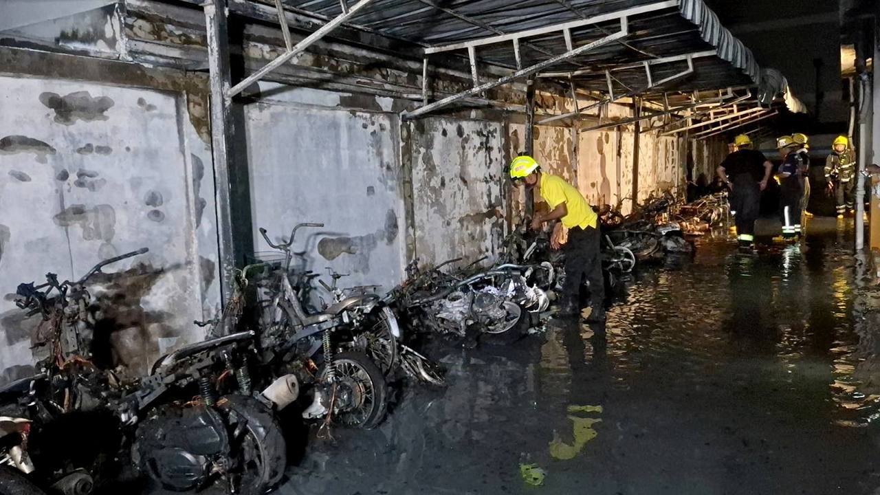 ไฟไหม้ลานจอดรถในแมนชั่นย่านราษฎร์บูรณะกลางดึก นักผจญเพลิงสกัดได้ใน 20 นาที แต่รถราไหม้วอดไป 35 คัน แบ่งเป็น จยย.29 คัน รถยนต์ 3 คัน และจักรยานอีก 3 คัน รปภ.ที่เกิดเหตุให้การ นั่งดูวงจรปิดเห็นไฟลุกไหม้จาก จยย.คันหนึ่งก่อนลามไปคันอื่น รีบใช้ถังดับเพลิงดับแต่เอาไม่อยู่เพราะ จยย.แต่ละคันมีน้ำมันเบนซินเป็นเชื้อเพลิง ก่อนรีบแจ้งตำรวจมาระงับเหตุเหตุไฟไหม้ลานจอดรถ จยย.-รถยนต์วอดอื้อเปิดเผยขึ้นเมื่อเวลา 01.40 น. วันที่ 27 ก.ย. พ.ต.ต.ประยูร วิทยา สว. (สอบสวน) สน.ราษฎร์บูรณะ รับแจ้งเหตุเพลิงไหม้ในลานจอดรถของพี.อาร์.เค แมนชั่น เลขที่ 555 ถนนสุขสวัสดิ์ ใกล้ปากซอยสุขสวัสดิ์ 17 แขวงบางประกอก เขตราษฎร์บูรณะ กรุงเทพฯ ประสานกำลังเจ้าหน้าที่ดับเพลิง พร้อม อปพร.เขตราษฎร์บูรณะ และอาสาฯมูลนิธิป่อเต็กตึ๊งร่วมตรวจสอบที่เกิดเหตุเป็นอาคารสูง 8 ชั้น ภายในลานจอดรถ จยย.อยู่ริมกำแพง มีเพลิงไหม้และลุกลามเข้าไปยังลานจอดรถยนต์ในตัวอาคาร เจ้าหน้าที่ระดมฉีดน้ำควบคุมเพลิงไว้ได้ภายในเวลาประมาณ 20 นาที เบื้องต้นไม่พบผู้ได้รับบาดเจ็บหรือเสียชีวิต จากการตรวจสอบภาพจากกล้องวงจรปิดพบว่า เหตุเริ่มจากกลุ่มควันพวยพุ่งออกมาจากรถ จยย.คันหนึ่งภายในลานจอดรถ จยย. ก่อนมีประกายไฟลุกลามอย่างรวดเร็วไปยังรถคันข้างเคียงจนเกิดไฟลุกไหม้ต่อเนื่อง ทำให้ยานพาหนะที่จอดอยู่เสียหายรวม 35 คัน แยกเป็นจักรยานยนต์ 29 คัน จักรยาน 3 คัน รถยนต์นั่งส่วนบุคคล 2 คัน และรถกระบะ 1 คันสอบสวนนายจตุพร รุ่งหิรัญ อายุ 59 ปี เจ้าหน้าที่รักษาความปลอดภัย ให้การว่า ขณะปฏิบัติหน้าที่ เห็นภาพเพลิงลุกไหม้ขึ้นที่รถ จยย.ที่จอดติดๆกันจากกล้องวงจรปิดรีบนำเครื่องดับเพลิงไปฉีดแต่เพลิงได้ลุกลามอย่างรวดเร็ว เพราะมีน้ำมัน เบนซินเป็นเชื้อเพลิงเกิดเสียงระเบิดดังเป็นระยะจึงรีบโทร.แจ้งตำรวจด้าน พ.ต.ต.ประยูร วิทยา สว. (สอบสวน) เจ้าของคดี กล่าวว่า ขณะนี้เจ้าหน้าที่กองพิสูจน์หลักฐานกำลังเข้าตรวจสอบที่เกิดเหตุ แต่ต้นเพลิงจะเกิดขึ้นจากรถ จยย.คันไหน ต้องนำภาพจากกล้องวงจรปิดมาดูประกอบเพื่อช่วยให้หาต้นเพลิงได้ง่ายขึ้น เบื้องต้นยังไม่สรุปสาเหตุที่แท้จริงของเพลิงไหม้ รอการตรวจสอบจากกองพิสูจน์หลักฐานและเจ้าหน้าที่ผู้เชี่ยวชาญอย่างละเอียดก่อนจะสรุปสาเหตุของเหตุเพลิงไหม้ครั้งนี้ต่อไปอ่าน "คอลัมน์หนังสือพิมพ์ไทยรัฐ" ทั้งหมดที่นี่