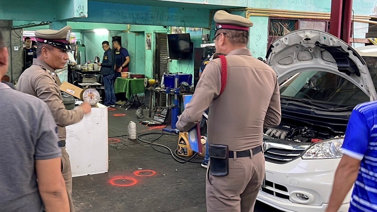 หนุ่มควง 9 มม.บุกยิงเจ้าของอู่ซ่อมรถ พลาด โดนปืนสวนพรุนดับสยอง หลังนำรถไปซ่อมแล้วมีปัญหารถไม่เสร็จ ยื่นเรื่องฟ้องศาล สุดท้ายตัวเองเป็นฝ่ายแพ้คดี ก่อนเกิดเหตุปรี่เข้าไปหาแล้วเปิดฉากยิงใส่ก่อน ถูกเจ้าของอู่คว้า 9 มม.ตอบโต้ เกิดการดวลปืนกันสนั่นล้มฟุบคาที่ ส่วนคู่กรณีสาหัส ช่างซ่อมลูกน้องดวงซวยถูกเศษกระจกบาดได้รับบาดเจ็บไปด้วยหนุ่มควงปืนบุกดวลปืนเจ้าของอู่ซ่อมรถ พลาดถูกยิงพรุนดับสยอง คู่กรณีอาการสาหัส เปิดเผยเมื่อเวลา 17.30 น. วันที่ 29 ก.ย. พ.ต.อ.วิโรจน์ ตัสโส ผกก.สภ.สำโรงเหนือ จ.สมุทรปราการ รับแจ้งเหตุยิงกันภายในอู่ซ่อมรถยนต์เอนกเซอร์วิสเลขที่ 1826 หมู่ 7 ซอยศรีสมิตร ต.เทพารักษ์ อ.เมืองสมุทรปราการ ไปตรวจสอบพร้อมอาสาสมัครมูลนิธิร่วมกตัญญูและสมาคมกู้ภัยสมุทรปราการที่เกิดเหตุพบศพนายไตรรัตน์ ชั่งใจ อายุ 40 ปี นอนจมกองเลือดบริเวณลานจอดในอู่ซ่อมรถ สภาพถูกยิงเข้าลำตัวหลายนัด นอกจากนี้ยังมีผู้บาดเจ็บ 2 คน ทราบชื่อนายเอนก ยอดเพชร อายุ 37 ปี เจ้าของอู่ ถูกยิงเข้าที่สะโพก 1 นัด อาการสาหัสและนายกิตติ์ธเนศ ศุภวรานิธิพงค์ ช่างซ่อมรถถูกเศษกระจกบาดบาดเจ็บเล็กน้อยถูกนำส่งโรงพยาบาลสินแพทย์เจ้าหน้าที่ตรวจสอบหลักฐานภายในอู่พบอาวุธปืน 9 มม.ตกอยู่ที่พื้น 2 กระบอก พร้อมแมกกาซีนและปลอกกระสุนขนาดเดียวกันตกกระจายเกลื่อนหลายสิบปลอก เบื้องต้นทราบว่าเป็นปืนของนายไตรรัตน์ผู้ตายกับนายเอนก เจ้าของอู่รถสอบสวนพยานทราบว่านายไตรรัตน์ ผู้ตายกับนายเอนก เจ้าของอู่เคยมีคดีฟ้องร้องเรื่องการซ่อมรถ หลังนายไตรรัตน์นำรถมาซ่อมแล้วมีปัญหาซ่อมไม่เสร็จ ก่อนยื่นฟ้องเจ้าของอู่ ต่อมาศาลมีคำพิพากษาให้นายเอนกชนะ ทำให้นายไตรรัตน์เกิดความโกรธแค้น ก่อนเกิดเหตุผู้ตายบุกเข้าไปหานายเอนก ก่อนใช้ปืนยิงใส่ถูกเจ้าของอู่คว้าปืนยิงสวนเกิดการดวลปืนกันดุเดือด เป็นเหตุให้นายไตรรัตน์เสียชีวิตคาที่ ส่วนนายเอนกบาดเจ็บสาหัส ลูกน้องดวงซวยโดนกระจกบาดได้รับบาดเจ็บไปด้วยอ่าน "คอลัมน์หนังสือพิมพ์ไทยรัฐ" ทั้งหมดที่นี่