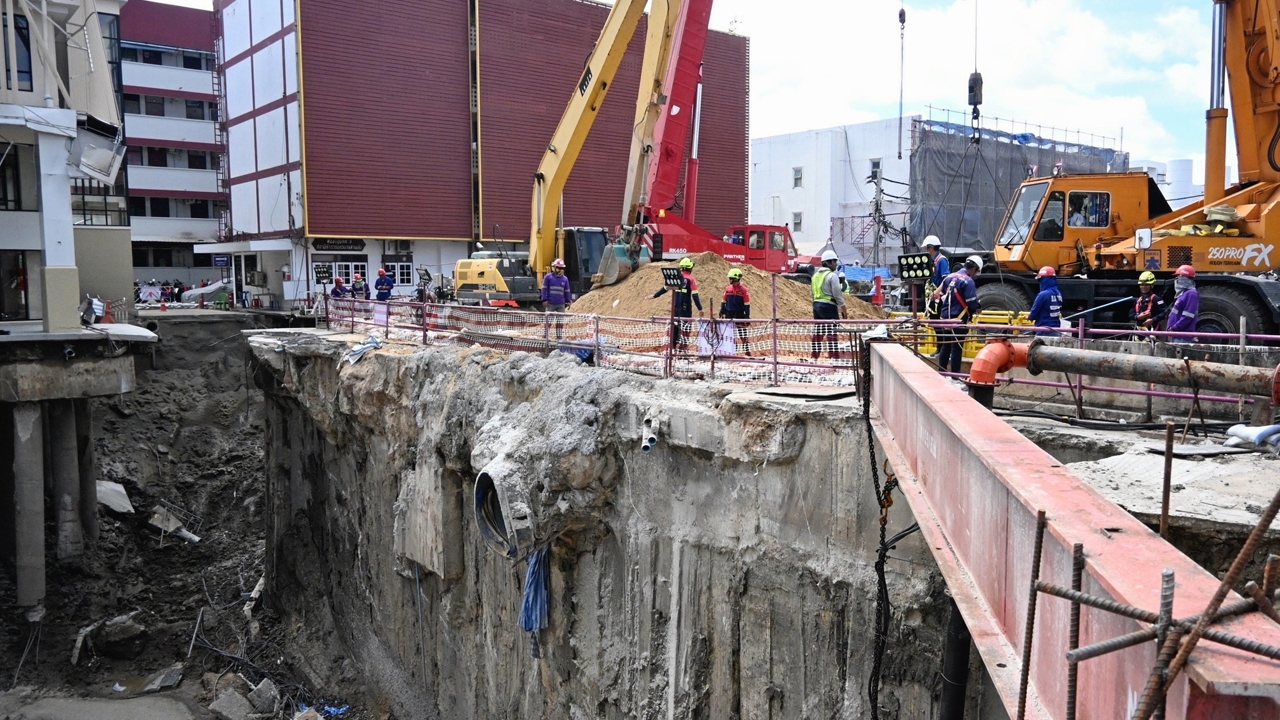 รถเครน 200 ตัน เร่งขนเสาไฟฟ้า สายไฟ ท่อประปา และเศษวัสดุ ออกจากหลุมยุบหมดแล้ว รฟม.ปรับแผนระดมขนทรายล้วนกลบหลุมยุบถนนสามเสน ประเมินต้องใช้ทรายทั้งหมด 7,000- 8,000 คิว หรือมากกว่า 1,000 เที่ยวรถ คาดใช้เวลา 5-6 วัน จะเพิ่มระดับขึ้นมาเท่าถนนเดิม ก่อนปรับผิวจราจรพร้อมเปิดใช้วันที่ 9 ต.ค. ตามกำหนดเดิม สาเหตุไม่ถมทรายสลับกับเทปูนเพื่อความสะดวกการก่อสร้างรถไฟฟ้าใต้ดินในอนาคต ส่วนการจราจรรอบ รพ.วชิรพยาบาลยังวิกฤติ ต้องรับผู้ป่วยวันละ 4- 5 พันคน วอนผู้ป่วยและครอบครัวใช้รถสาธารณะกรณีถนนสามเสนช่วงหน้าโรงพยาบาลวชิรพยาบาลเกิดทรุดตัวเป็นหลุมขนาดยักษ์ สันนิษฐานเบื้องต้นสาเหตุมาจากความผิดพลาดทางวิศวกรรมการก่อสร้างรถไฟฟ้าใต้ดินสายสีม่วง ช่วงเตาปูน-ราษฎร์บูรณะ (วงแหวนกาญจนาภิเษก) นายชัชชาติ สิทธิพันธุ์ ผู้ว่าฯ กทม. ประกาศเป็นพื้นที่ภัยพิบัติ อยู่ระหว่างซ่อมแซมให้ถนนสามเสนกลับมาใช้งานได้ปกติ ส่วนการรถไฟฟ้าขนส่งมวลชนแห่งประเทศไทย (รฟม.) แถลงผลวิเคราะห์สาเหตุมาจากท่อประปาแตกน้ำชะดินไหลเข้าช่องว่างระหว่างอุโมงค์กับสถานีรถไฟฟ้า แก้ไขด้วยการใช้คอนกรีตเทอุดรอยรั่วในอุโมงค์สำเร็จ พร้อมเร่งซ่อมแซมเพื่อคืนพื้นผิว ถนนสามเสนได้ภายใน 2 สัปดาห์ความคืบหน้าเมื่อเวลา 10.30 น. วันที่ 30 ก.ย. การดำเนินการเสริมพื้นดินที่ยุบลงไปบนถนนสามเสนยังเร่งดำเนินการต่อเนื่อง รถบรรทุกทรายหลายสิบคันทยอยเข้ามาเททรายลงบริเวณหลุม วิศวกรและเจ้าหน้าที่ควบคุมงานวางแผนการถมทรายเป็นชั้น ชั้นละประมาณ 1 เมตร เพื่อเพิ่มระดับจนใกล้เคียงผิวถนนเดิม วันนี้มีทรายเข้ามาประมาณ 1,300 ลูกบาศก์เมตร ใช้รถบรรทุกประมาณ 130 คัน มากกว่าที่เคยคาดการณ์ไว้ราว 1,000 ลูกบาศก์เมตรต่อวัน กระบวนการถมทรายจะใช้เวลา 3-4 วันจึงจะได้ระดับเท่ากับผิวถนน พร้อมเข้าสู่ขั้นตอนปรับพื้นและปูผิวทางใหม่เพื่อเปิดให้ประชาชนสัญจรตามปกติ ส่วนวัสดุสิ่งกีดขวางที่เคยตกค้างในหลุม เช่น เสาไฟฟ้า หม้อแปลง รวมถึงท่อประปาขนาดใหญ่ ถูกเคลื่อนย้ายออกหมดแล้วนายเทียนชัย วงศ์สุวรรณ ผู้อำนวยการเขตดุสิต เผยว่า ขณะนี้การดำเนินการเป็นไปตามแผนที่วางไว้ การรถไฟฟ้าขนส่งมวลชนแห่งประเทศไทย (รฟม.) และผู้รับเหมาเร่งจัดเก็บวัสดุและสิ่งกีดขวางออกจากพื้นที่ต่อเนื่อง ก่อนเข้าสู่การถมทราย เดิมทีจะใช้ทรายผสมปูน แต่เพื่อป้องกันปัญหาในอนาคต หากมีโครงการก่อสร้างรถไฟฟ้าใต้ดินผ่านพื้นที่นี้ จึงปรับแผนใช้ทรายล้วนเพื่อไม่ให้เกิดอุปสรรคในการขุดเจาะหรือรื้อถอนงาน วันนี้คาดว่าสามารถถมทรายได้ราว 1-2 เมตร ก่อนประเมินสถาน