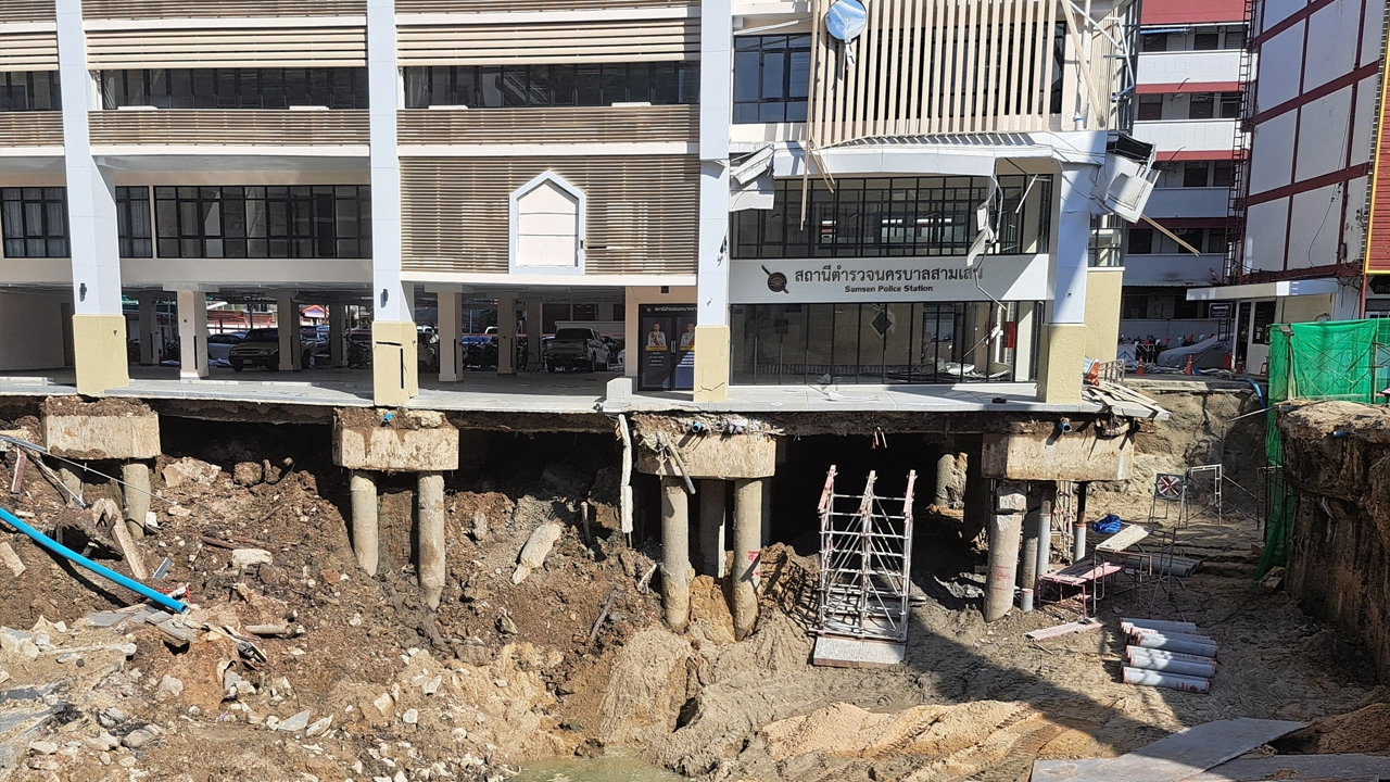 รฟม.แจงการถมทรายอุดหลุมยุบถนน สามเสนยังเป็นไปตามแผน หลังวันนี้เพิ่มเสาเข็มสั้น 3 ต้น ค้ำยันอาคารที่ทำการใหม่ สน.สามเสน พร้อมติดกล้องเฝ้าระวังการสั่นสะเทือน ขณะนี้ยังไม่พบการเคลื่อนไหวที่รุนแรง ส่วนถนนทรุดที่หน้าการไฟฟ้านครหลวงเขตยานนาวา เจ้าหน้าที่ปิดกั้นท่อระบายน้ำป้องกันการรั่วซึมของน้ำลงสู่บริเวณที่เกิดการทรุดตัว พร้อมสูบน้ำออกจากบริเวณดังกล่าว ก่อนวางท่อพร้อมบ่อพักฟื้นคืนสภาพพื้นที่เป็นขั้นตอนต่อไปความคืบหน้าในการถมทรายใช้ซีเมนต์อุดอุโมงค์คืนถนนสามเสนตามกำหนดการวันที่ 9 ต.ค.นี้หลังเกิดการทรุดตัวเป็นหลุมยักษ์หน้า รพ.วชิรพยาบาล สาเหตุจากการสไลด์ของดิน ในโครงการก่อสร้างรถไฟฟ้าใต้ดินสายสีม่วงใต้ ล่าสุดเมื่อวันที่ 3 ต.ค. นายชัชชาติ สิทธิพันธุ์ ผู้ว่าฯ กทม. กล่าวหลังลงพื้นที่ติดตามความคืบหน้าเหตุถนนสามเสนทรุดตัวหน้าทางเข้าโรงพยาบาลวชิรพยาบาลว่าเช้านี้ราวตี 5 มีฝนตกลงมาประมาณ 23 มม. มีน้ำขังเล็กน้อยในหลุมยุบ ความคืบหน้าขณะนี้มีการถมทรายและทำตัวค้ำยันอาคาร สน.สามเสน อาจมีดินทรุดบ้างจากฝนตก ให้เจ้าหน้าที่และผู้เชี่ยวชาญสรุปอีกครั้งว่าจะดำเนินการต่ออย่างไร ภาพรวมงานก้าวหน้าไปตามแผนที่กำหนดไว้ ทีม กทม. หน้างาน เตรียมพร้อมสูบน้ำรับสถานการณ์ฝน และตามที่ รฟม.สั่งการผู้ว่าฯ กทม.กล่าวอีกว่า ในการปฏิบัติงานได้ถมทรายเพิ่มอีกประมาณ 1,300 คิว ปริมาณทรายที่ถมไปทั้งหมดราว 3,500 คิว มีการย่อยแผ่นคอนกรีตในบริเวณหลุมแล้ว ทรายส่วนหนึ่งถูกดันเข้าไปใต้ สน.สามเสน รวมถึงเสริมความมั่นคงแข็งแรง ทำตัวค้ำยันชั่วคราว (เสาเข็มสั้น) สำนักป้องกันและบรรเทาสาธารณภัยเฝ้าระวังตั้งกล้องตรวจสอบความเคลื่อนไหวของอาคารยังไม่พบการเคลื่อนไหวที่รุนแรง ยังคง ปกติ ทั้งนี้ การเตรียมเปิดให้บริการถนนสามเสนหน้า รพ.วชิรพยาบาล คาดการณ์ว่าการถมทรายจะแล้วเสร็จประมาณวันที่ 4-5 ต.ค. จากนั้นจะบดอัดทรายและทำชั้นพื้นถนน เปิดใช้งานจริงในวันที่ 9 ต.ค.68ต่อมาเวลา 15.00 น. ที่โรงพยาบาลวชิรพยาบาล นายปฏิเวช เหระยัง ผู้อำนวยการกองบริหารงานก่อสร้าง 4 การรถไฟฟ้าขนส่งมวลชนแห่งประเทศไทย นางวรัญญา ลีลาบูรณพงศ์ ผอ.เขตดุสิต และผู้ช่วยศาสตราจารย์ นายแพทย์จักราวุธ มณีฤทธิ์ คณบดีคณะแพทยศาสตร์วชิรพยาบาล ร่วมกันแถลงความคืบหน้าประจำวันจากเหตุถนนสามเสนยุบหน้า รพ.วชิรพยาบาลนายปฏิเวช เหระยัง ผู้อำนวยการกองบริหารงานก่อสร้าง 4 การรถไฟฟ้าขนส่งมวลชนแห่งประเทศไทย เปิดเผยว่า เมื่อวันที่ 2 ต.ค. เจ้าหน้าที่ได้ถมทรายเพิ่มอีกประมาณ 1,300 ลูกบาศก์เมตร ทำให้ขณะน
