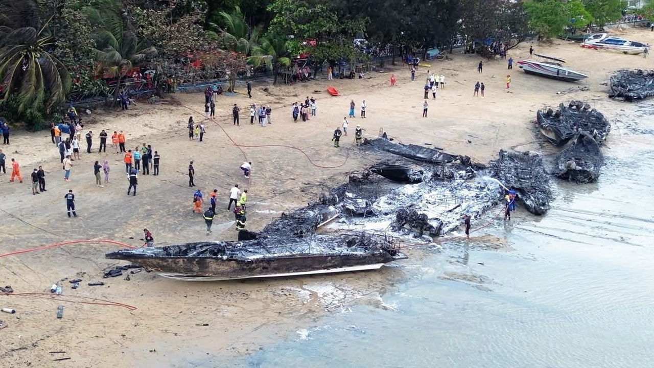 ระทึกเกาะภูเก็ต ไฟไหม้เรือสปีดโบ๊ตจอดเทียบท่าเรืออ่าวฉลอง วอดเรียบ 22 ลำ ค่าเสียหายกว่า 38 ล้านบาท เหตุเกิดช่วงใกล้เช้ามืด จู่ๆเกิดเพลิงลุกไหม้เรือลำแรกที่จอดอยู่ริมชายหาด เปลวไฟลุกลามอย่างรวดเร็วไปติดเรือลำที่จอดอยู่ใกล้กันไหม้ต่อไปเรื่อยๆกลายเป็นทะเลเพลิงชั่วพริบตา เจ้าหน้าที่ระดมฉีดน้ำสกัดนานกว่า 1 ชั่วโมงครึ่งเพลิงสงบ ตำรวจเช็กภาพวงจรปิดไม่พบสิ่งผิดปกติ คาดสาเหตุจากระบบไฟฟ้าในเรือลัดวงจรเกิดประกายไฟไปติดน้ำมันเชื้อเพลิง แต่ยังไม่ตัดทิ้งประเด็นอื่น เจ้าหน้าที่ พฐ.เร่งตรวจสอบหาสาเหตุที่แน่ชัดเหตุไฟไหม้เรือสปีดโบ๊ตวอดระนาว 22 ลำ เปิดเผยเมื่อเวลา 04.00 น. วันที่ 7 ม.ค. ร.ต.ท.ณัฐพล พุ่มลืมคิด รอง สว. (สอบสวน) สภ.ฉลอง อ.เมืองภูเก็ต ได้รับแจ้งจากศูนย์ช่วยเหลือนักท่องเที่ยว จ.ภูเก็ต หรือศูนย์ไข่มุก ว่าเกิดเหตุเพลิงไหม้เรือสปีดโบ๊ตหลายลำที่จอดเทียบท่าบริเวณท่าเทียบเรืออ่าวฉลอง ต.ฉลอง หลังรับแจ้งรายงานให้ พ.ต.อ.สุระศักดิ์ ใจดี ผกก. นำกำลังตำรวจ พร้อมเจ้าหน้าที่ ศร.ชล.เขต 3 ประสานรถดับเพลิงจากเทศบาลตำบลฉลอง เทศบาลตำบลกะรน เทศบาลนครภูเก็ต และ ปภ.นับสิบคัน ตลอดจนเรือดับเพลิงของ อบจ.ภูเก็ต รุดไประงับเหตุที่เกิดเหตุเป็นท่าเทียบเรือของ อบจ.ภูเก็ต พบเพลิงลุกไหม้เรือสปีดโบ๊ตที่จอดลอยลำเรียงรายอยู่ริมชายหาดหลายสิบลำ เปลวไฟแดงฉานลุกลามอย่างรวดเร็วไปยังเรือลำอื่นๆที่อยู่ติดกันกลายเป็นทะเลเพลิงลุกโชนขยายวงกว้างออกไปเรื่อยๆ เจ้าหน้าที่ ระดมฉีดน้ำสกัดแต่การควบคุมเพลิงเป็นไปด้วยความ ยากลำบาก เนื่องจากเรือแต่ละลำมีน้ำมันเชื้อเพลิงและวัสดุติดไฟเป็นเชื้อเพลิงอย่างดี ใช้เวลานานกว่า 1 ชม.ครึ่งสามารถควบคุมเพลิงไว้ได้ หลังเพลิงสงบพบว่า มีเรือสปีดโบ๊ตถูกไฟไหม้ได้รับความเสียหายทั้งหมด 22 ลำ รวมมูลค่าความเสียหายประมาณ 38 ล้านบาทต่อมาเวลา 07.00 น. นายอดุลย์ ระลึกมูล ผอ.สำนักงานเจ้าท่าภูมิภาคที่ 5 สาขาภูเก็ต นายเรวัต อารีรอบ นายก อบจ.ภูเก็ต พร้อมตำรวจ สภ.ฉลอง และเจ้าหน้าที่พิสูจน์หลักฐาน นำกำลังเข้าตรวจสอบเก็บหลักฐานจากซากเรือสปีดโบ๊ตทั้ง 22 ลำ ที่ถูกเพลิงไหม้จอดเกยตื้นเรียงรายอยู่ริมชายหาด ยังคงมีเจ้าหน้าที่ดับเพลิงฉีดน้ำหล่อเลี้ยงไว้เพื่อป้องกันไม่ให้ไฟปะทุขึ้นมาอีก นายอดุลย์กล่าวว่า เพลิงไหม้ เรือสปีดโบ๊ตได้รับความเสียหายจำนวนมาก เรือลำอื่น ที่ไม่เกี่ยวข้องยังสามารถใช้งานได้ตามปกติ ส่วนเรือ ที่ถูกเพลิงไหม้ต้องควบคุมไว้ก่อนจนกว่าการตรวจพิสูจน์หลักฐานจะแล้วเสร็จถึงจะเคลื่อนย้ายเศษซากออกจากชายหาด น