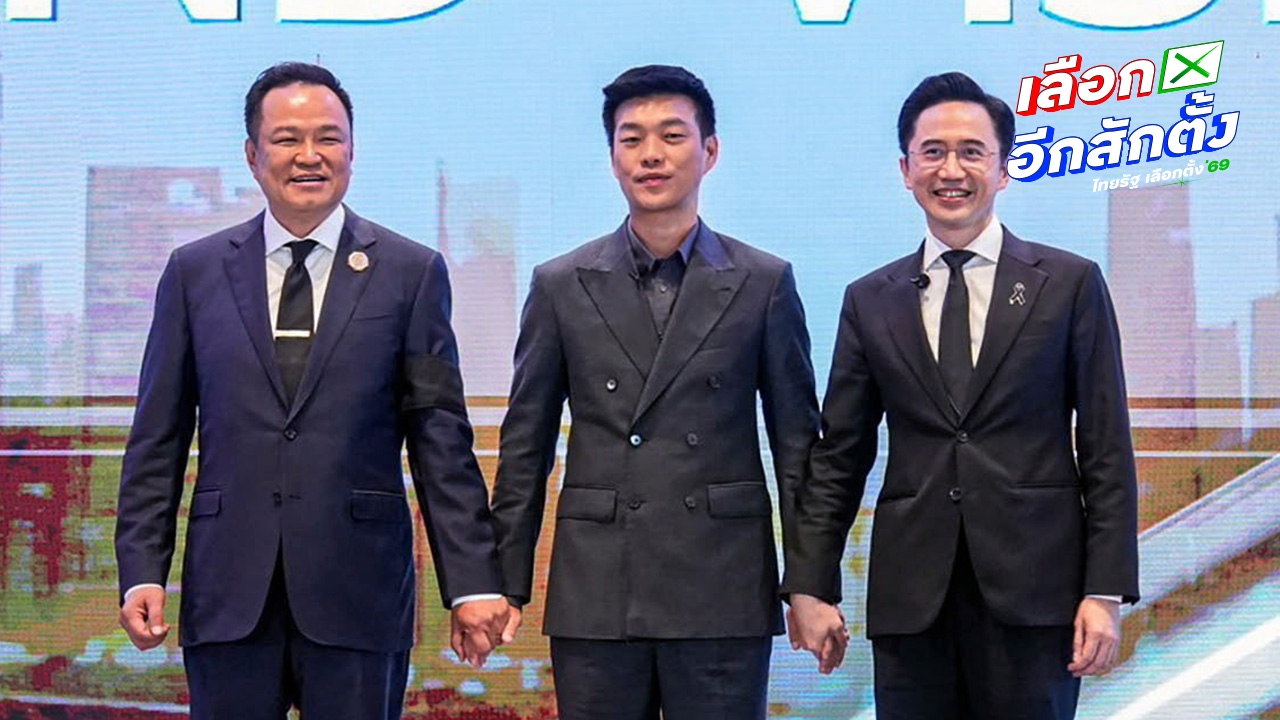 3 ตัวเต็งนายกฯขึ้นเวทีประชันวิสัยทัศน์ “ทิศทางโลกทิศทางไทย” ค่ายช่อง 3 “ยศชนัน” ฉายภารกิจด่วนขับเคลื่อนประเทศ เร่งช่วยคนจมน้ำให้หายใจได้ก่อน เริ่มจากล้างหนี้ ปลดล็อกกำลังซื้อ ดันระบบเศรษฐกิจหมุนเวียน เดินหน้าเศรษฐกิจอนาคต ชี้ พท.ไม่เลือกกระทรวง แต่ขอเก้าอี้เดียวคือนายกฯ “อนุทิน” ยันไม่ใช่นายกฯฝึกงาน หวัง ปชช.จะให้ผ่านโปรได้ไปต่อ ไม่ปิดกั้นจับมือใคร แต่ถ้าค่ายส้มได้ที่ 1 ไม่ต้องยกมือให้ โต้ครหาปั่นสงครามชายแดนสร้างกระแสนิยม ชี้ รมต.กัมพูชายังบอกอย่าเลือกตนไปเลือกคนอื่น “ณัฐพงษ์” ย้ำ 12 วาระ 4 คานงัดเปลี่ยนประเทศ ดีลตั้ง รบ.ต้องโปร่งใสอยู่ในสายตา ปชช. ยืนกรานไม่เอา กธ. ไม่โหวตให้ “หนู” รู้ทัน รมต.เขมรสกัด ปชน.ล้มดีลสีเทา “โรม” ฉะนายกฯยืมปากศัตรูมาโกยคะแนน “มาร์ค” สวมบทตัวแปร โอ่เลือก ปชป.ประเทศปลอดภัย เป็นหลักประกันประเทศสะอาดและสงบแคนดิเดตนายกรัฐมนตรีพรรคประชาชน (ปชน.) พรรคเพื่อไทย (พท.) และพรรคภูมิใจไทย (ภท.) ขึ้นเวทีแสดงวิสัยทัศน์ร่วมกันครั้งแรก โดยต่างแสดงท่าทีทางการเมือง การจับมือเลือกขั้วในการจัดตั้งรัฐบาล หลังการเลือกตั้งวันที่ 8 ก.พ.69“เชน–หนู–เท้ง” ขึ้นเวทีอวดวิสัยทัศน์เมื่อเวลา 13.30 น.วันที่ 12 ม.ค.ที่ศูนย์ การประชุมแห่งชาติสิริกิติ์ สถานีโทรทัศน์ไทยทีวีสี ช่อง 3 จัดเวที “ทิศทางโลกทิศทางไทย” Global Dynamics and Thailand’s Future หัวข้อ Thailand Vision 2035 “เปิดวิสัยทัศน์แคนดิเดตนายกรัฐมนตรี จาก 3 พรรคเต็งหนึ่ง” มีนายอนุทิน ชาญวีรกูล นายกฯ และ รมว.มหาดไทย แคนดิเดตนายกฯ พรรคภูมิใจไทย (ภท.) นายยศชนัน วงศ์สวัสดิ์ แคนดิเดตนายกฯ พรรคเพื่อไทย (พท.) และนายณัฐพงษ์ เรืองปัญญาวุฒิ แคนดิเดตนายกฯ พรรคประชาชน (ปชน.) เข้าร่วมแสดงวิสัยทัศน์และตอบคำถาม“ยศชนัน” ย้ำช่วยคนจมน้ำหายใจได้ก่อนนายยศชนันกล่าวแสดงวิสัยทัศน์ว่า ประเทศไทยกำลังยืนอยู่บนจุดหัวเลี้ยวหัวต่อสำคัญ หากตัดสินใจผิดอาจต้องถอยหลังเหมือนหลายประเทศ กุญแจสำคัญคือการสื่อสารให้สังคมเห็นทิศทางร่วมกัน และสร้างความร่วมมือจากทุกภาคส่วน เพื่อขับเคลื่อนประเทศไปข้างหน้า แนวทางฟื้นฟูเศรษฐกิจ พรรคพท.เสนอการช่วยคนที่กำลังจมน้ำให้หายใจก่อน เริ่มจากล้างหนี้และเคลียร์หนี้ในคราวเดียว ปลดล็อกกำลังซื้อและทำให้ระบบเศรษฐกิจกลับมาหมุนเวียน จากนั้นจะเดินหน้าเพิ่มผลิตภาพเศรษฐกิจทั้ง 3 ภาคหลัก ได้แก่ ภาคเกษตร อุตสาหกรรมการผลิตและภาคบริการ เน้นใช้เทคโนโลยี วิทยาศาสตร์และนวัตกรรมมายกระดับ และเสนอผลักดันเศรษฐกิจอนาคต โดยเฉพาะ Wellness Economy และการแพทย์ครบวงจร ด้วยจุดแข็งด้านบริการการแพทย์ ต่อยอดสู่เ