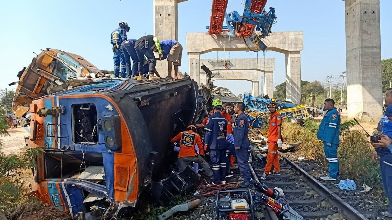 สยองฐานรองเครนร่วง ทับรถไฟดับ 32 เจ็บ 67 สายกรุงเทพฯ-อุบลราชธานี (คลิป)